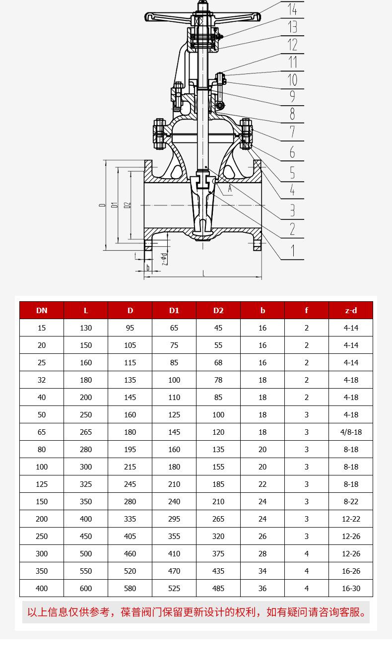 Válvula de Compuerta con Brida Z41W-16P Acero Inoxidable 304 Estándar Nacional Manual Sello Duro Admite Personalización A Prueba de Fugas Doble Brida