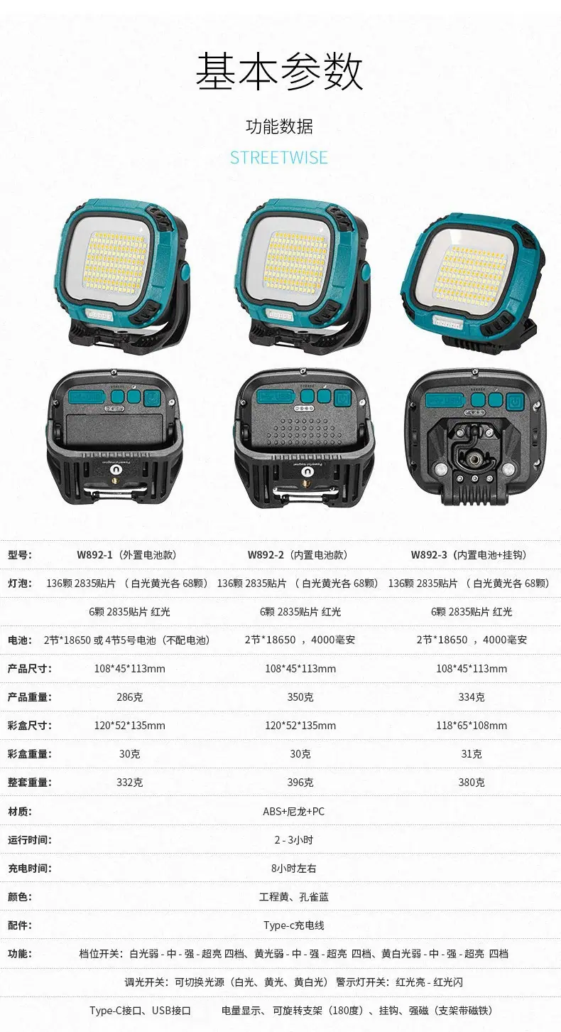 W891-1 Blue (external battery), W891-1 yellow (external battery model), W891-2 Blue (built-in battery), W891-2...