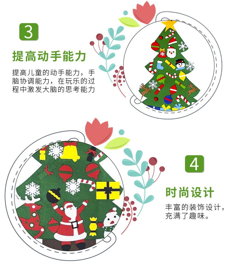 Árbol de Navidad de fieltro para niños, hecho a mano, bricolaje, decoración navideña tridimensional, colgante de fieltro para fiesta de Navidad
