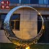 Anillo exterior redondo hueco de metal para decoración, departamento de ventas, hotel, paisaje acuático, escultura de luna de acero inoxidable, adornos