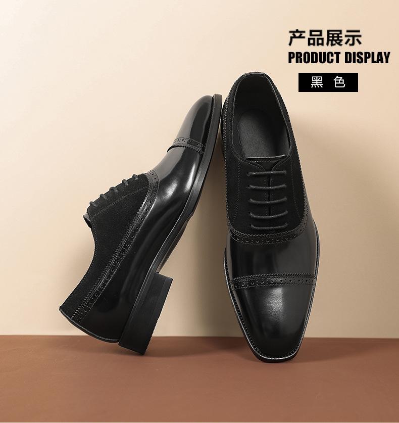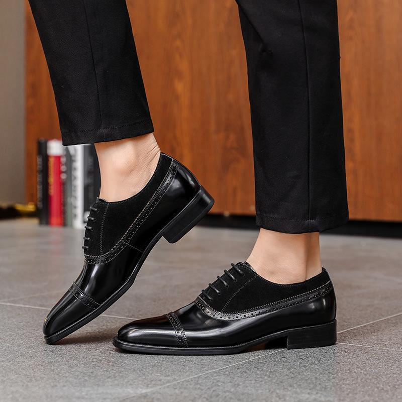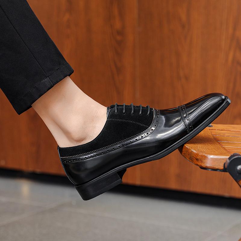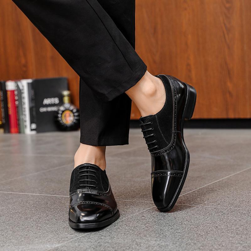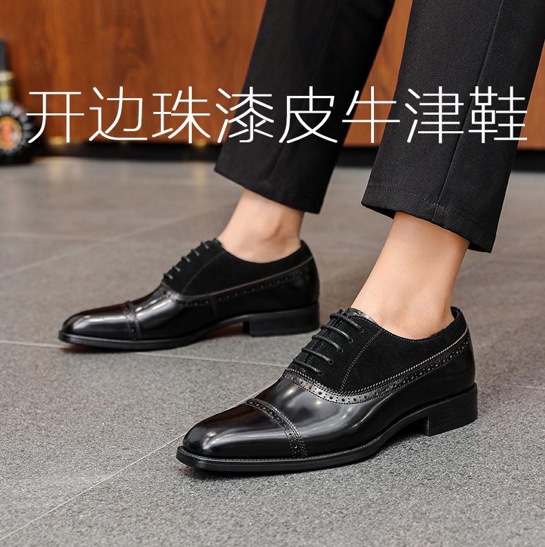 Zapatos de hombre con borde abierto, capa de cuentas, piel de vaca, charol, zapatos de vestir de negocios, cuero genuino, zapatos de hombre clásicos de cuero tallado de tres articulaciones.