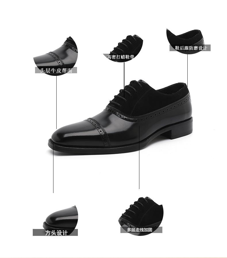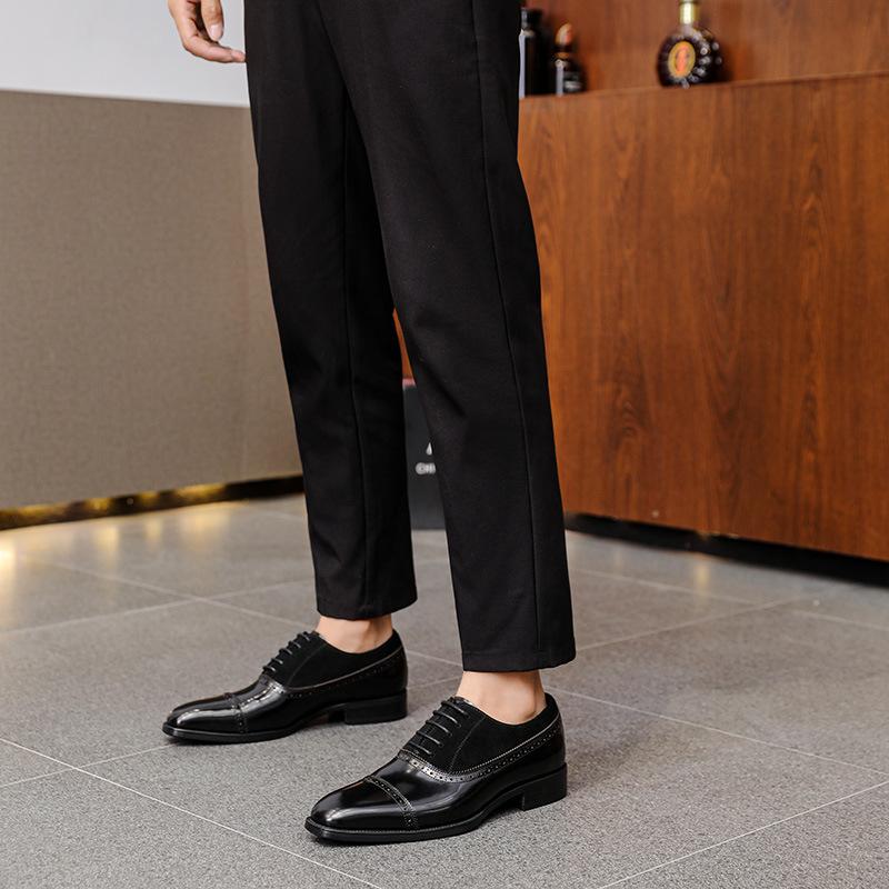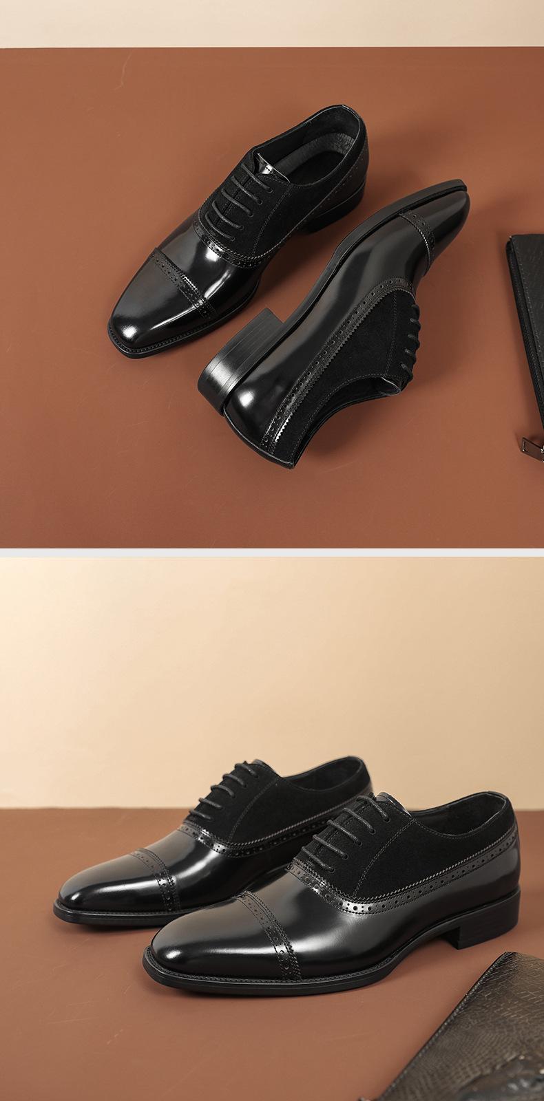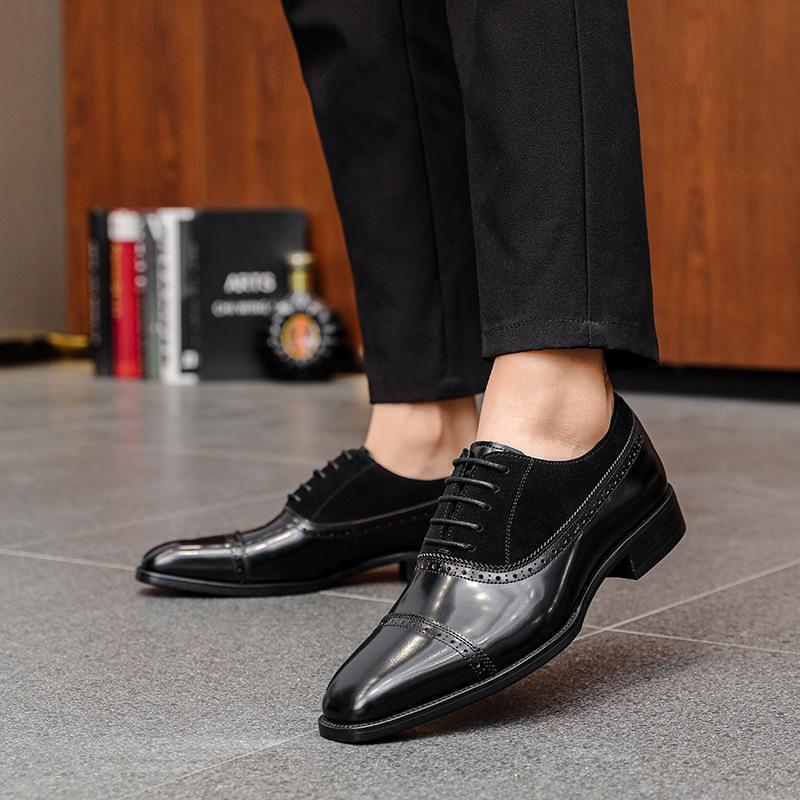 Zapatos de hombre con borde abierto, capa de cuentas, piel de vaca, charol, zapatos de vestir de negocios, cuero genuino, zapatos de hombre clásicos de cuero tallado de tres articulaciones.