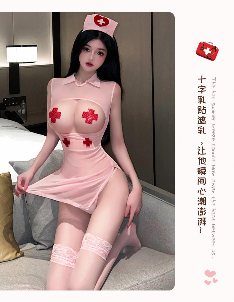 Lencería Sexy, Uniforme Sexy, Encantadora Enfermera Revelando Senos, Juego de Roles, No Necesita Quitarse Set de Suministros Qq