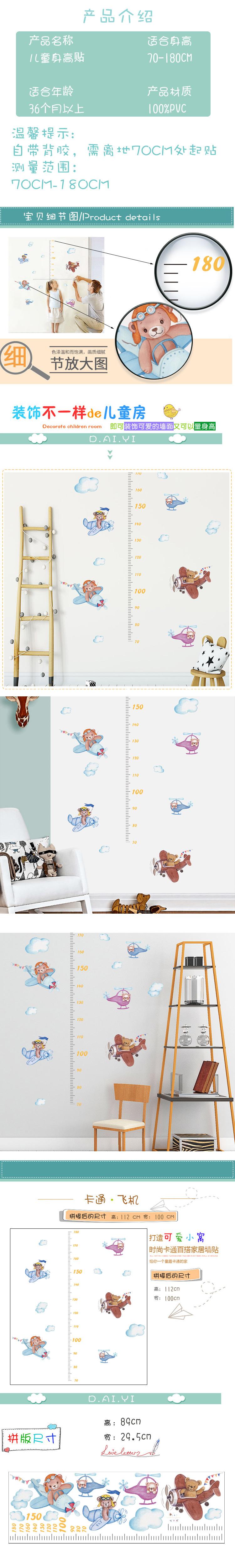 Calcomanías de Altura de Oso de Dibujos Animados Personalizadas Decoración de Dormitorio Regalos Corporativos Calcomanías de PVC Papel Calcomanías para Niños Calcomanías de Pared Autoadhesivas