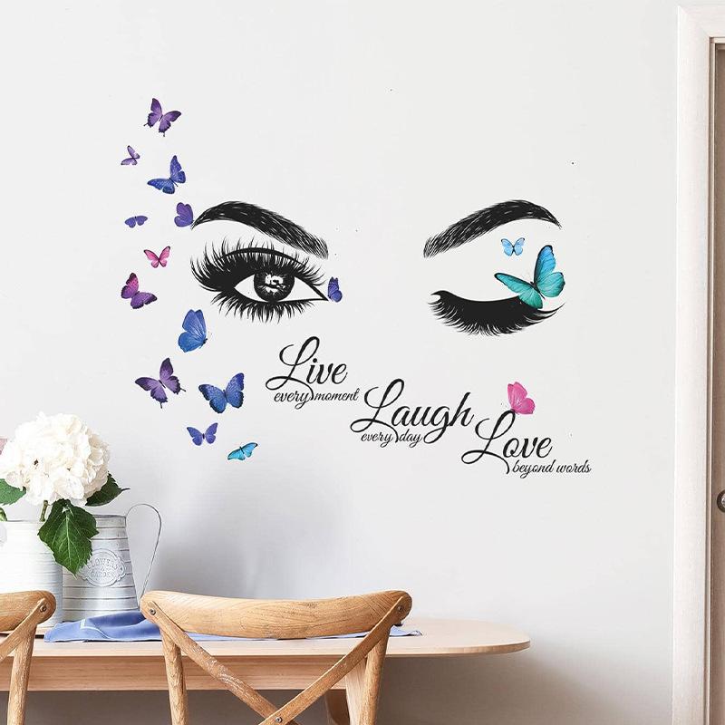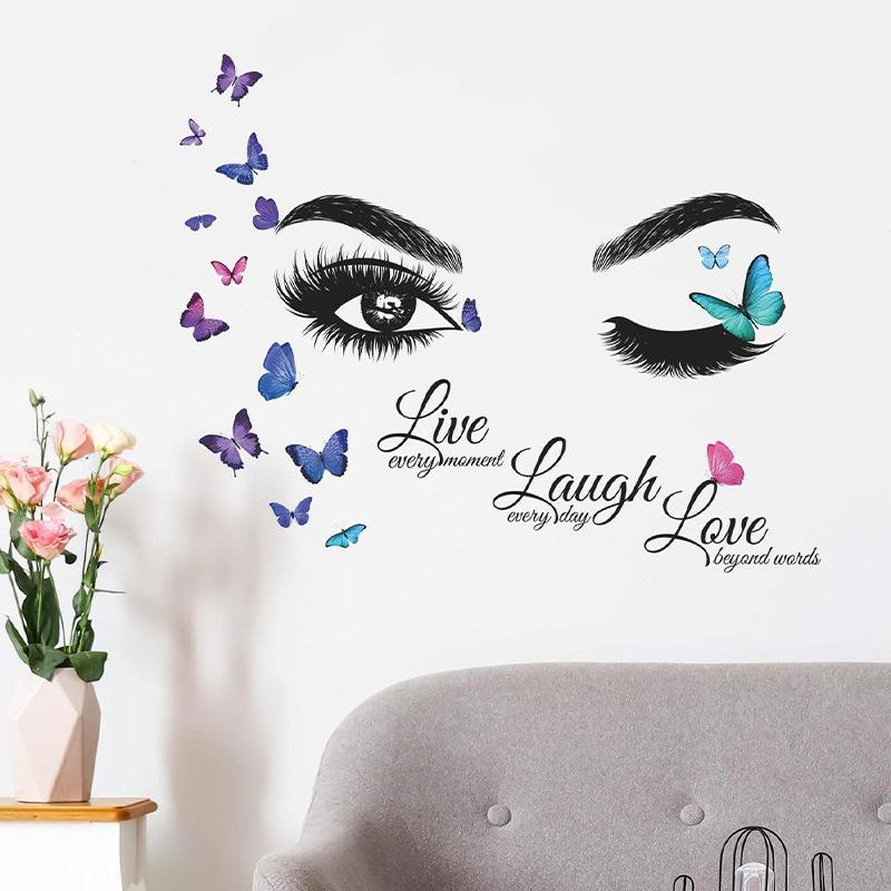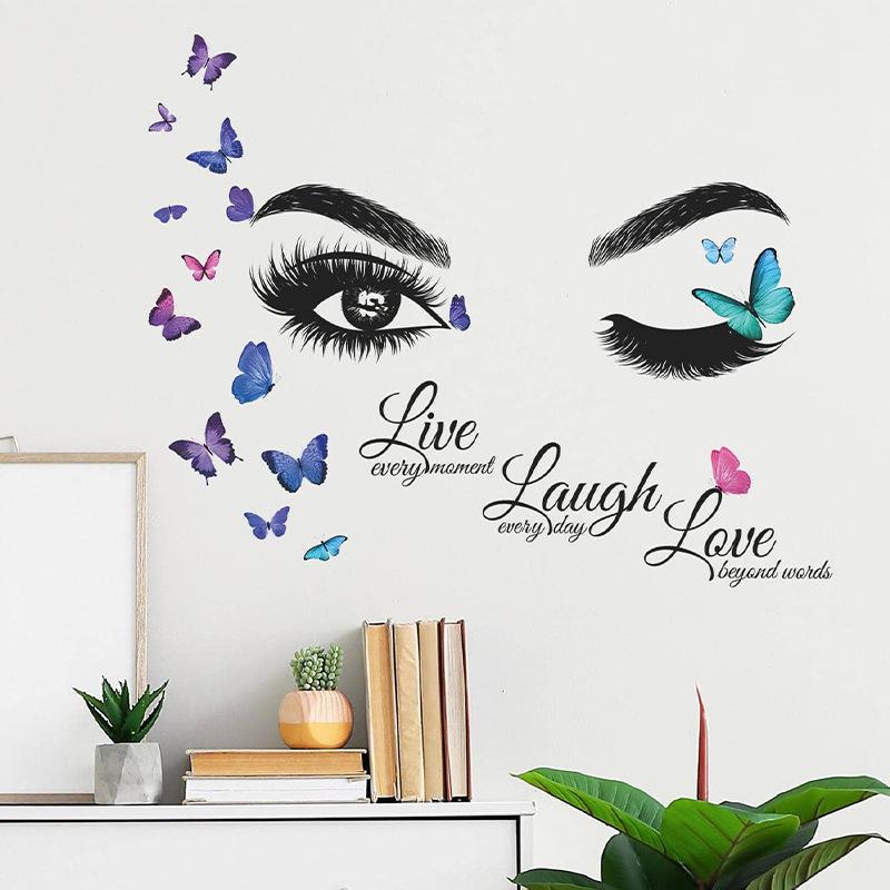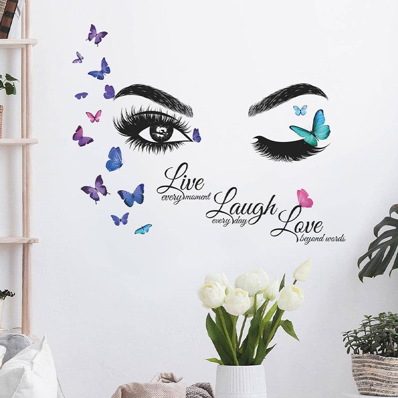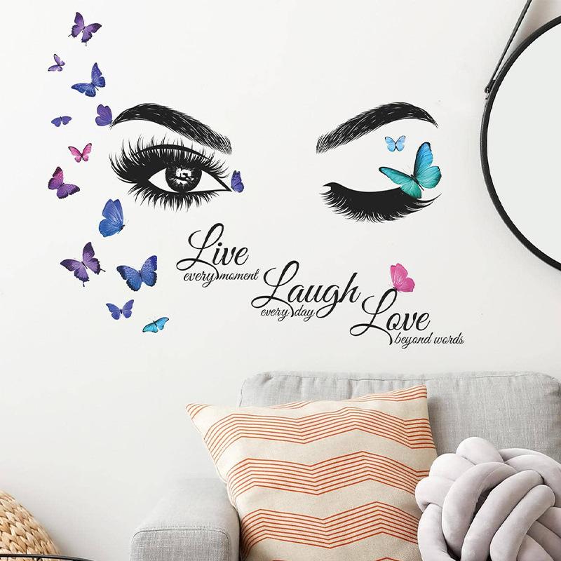 FX-D423 - Pegatinas decorativas de pared con diseño de mariposas y ojos de belleza creativas para dormitorio, sala de estar y hogar, venta al por mayor