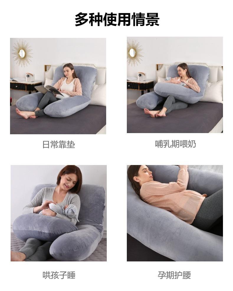 Almohada de terciopelo de cristal en forma de U para embarazadas, almohada de cintura, almohada lateral, núcleo de almohada para embarazadas, fábrica.
