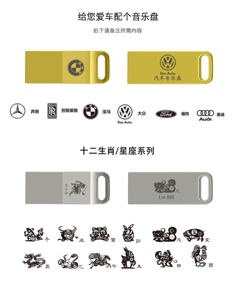 Disco U de metal de alta velocidad con letras de 32 G para publicidad privada de música, disco U de 16 G, logotipo, placa promocional corporativa