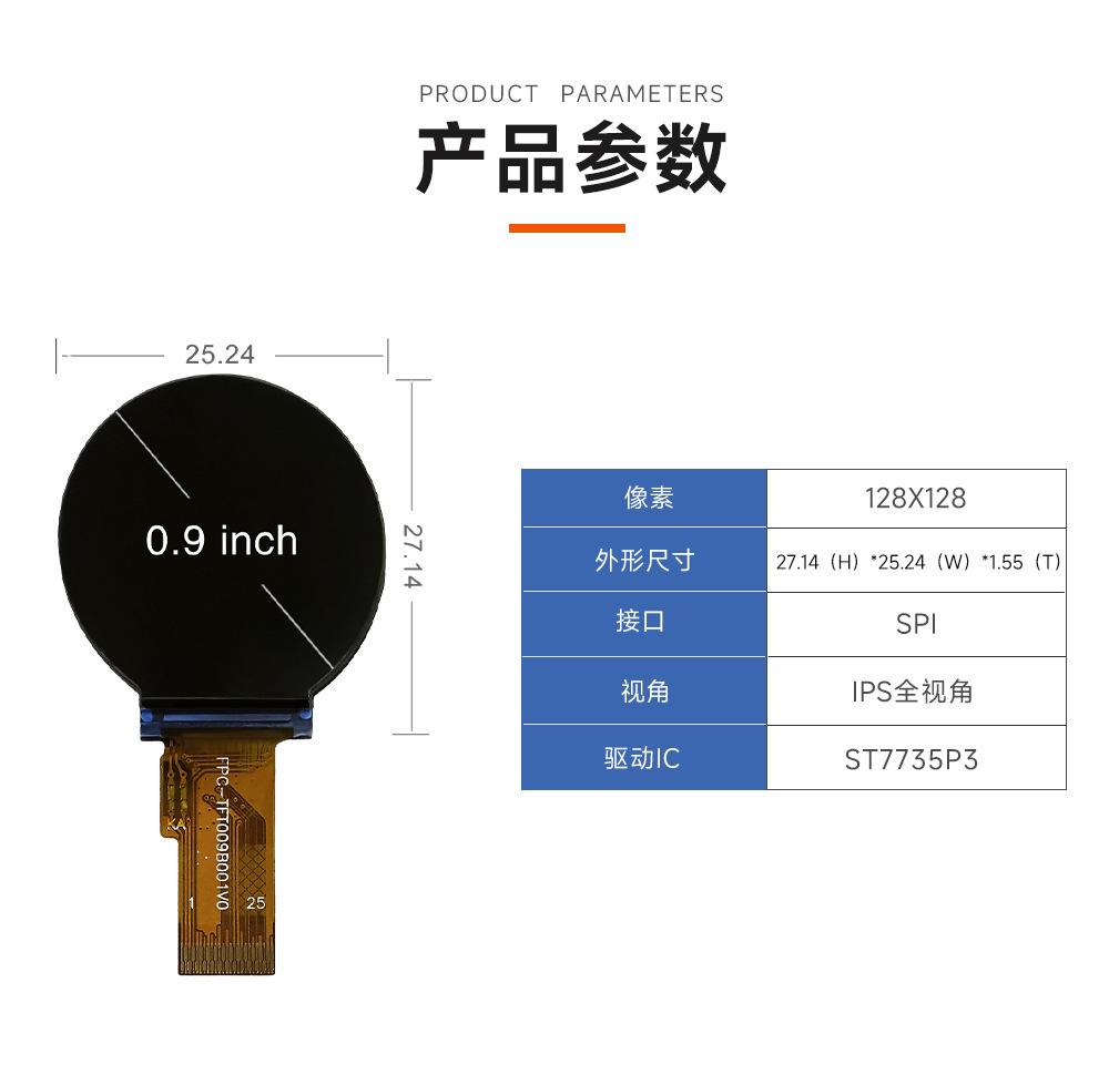Pantalla LCD portátil inteligente de producción original IPS con pantalla a color TFT redonda de 0,9 pulgadas