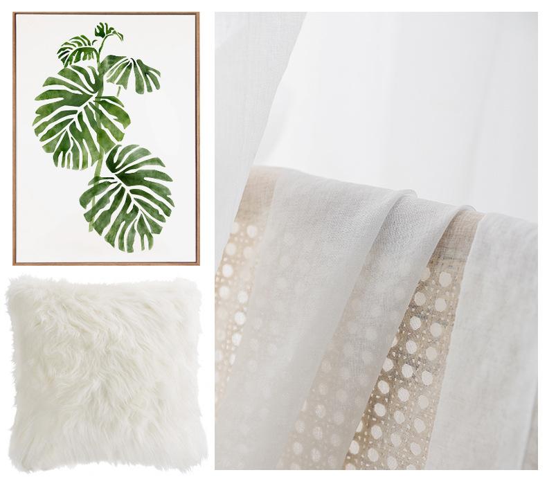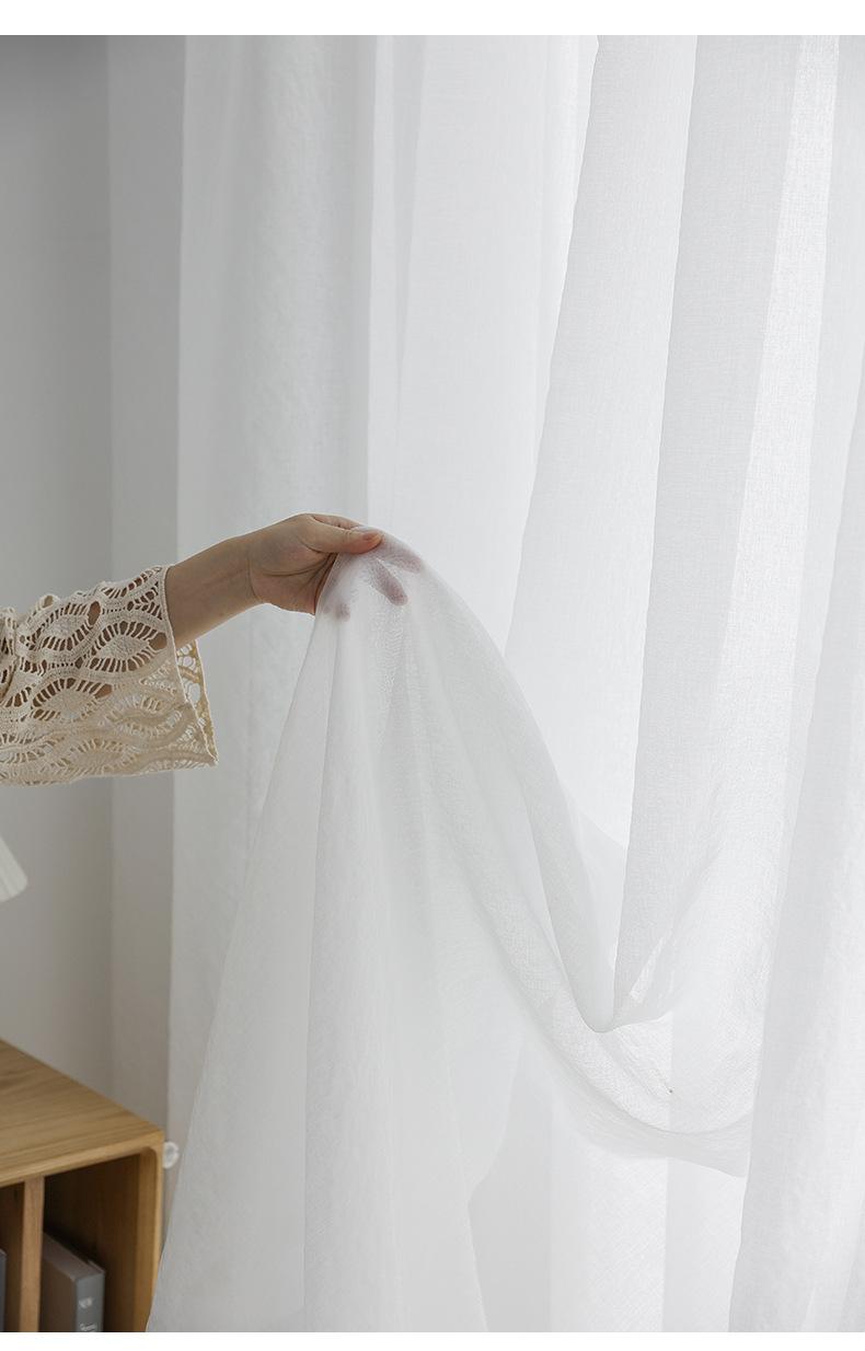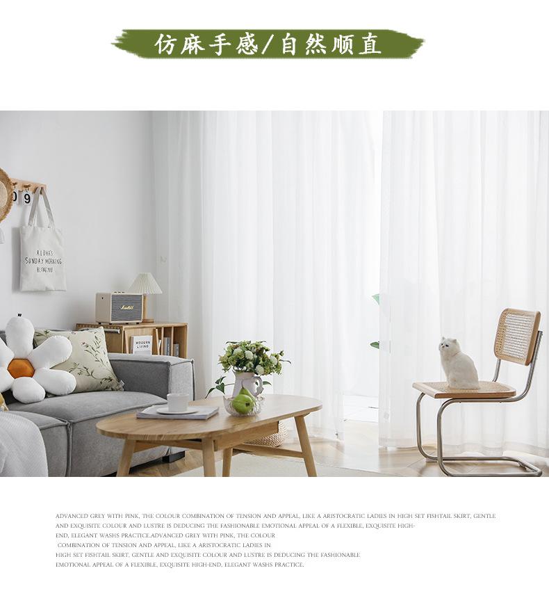 Cortina Mosquitera Blanca Semitransparente Poliéster Imitación Lino Blanco Gasa Cortina Sala de Estar Balcón Moderna Blanco Arena Cortina Divisoria