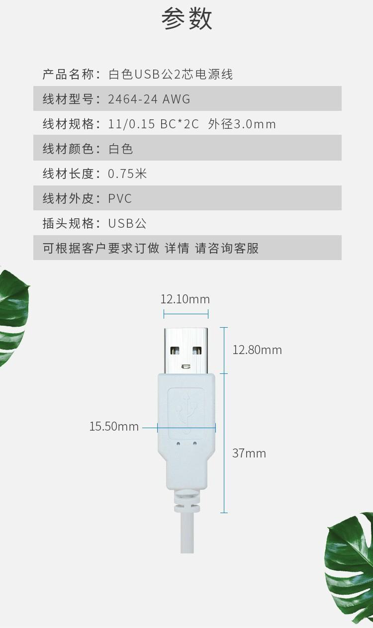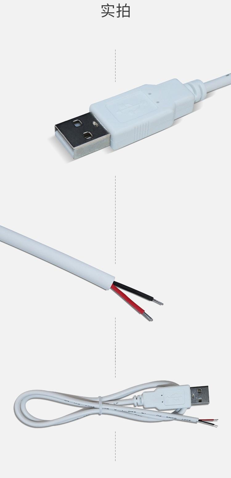 2464 24awg blanco USB un solo cabezal 2 núcleos cable de alimentación ventilador pequeño luz LED usb0.75 m macho 5v cable
