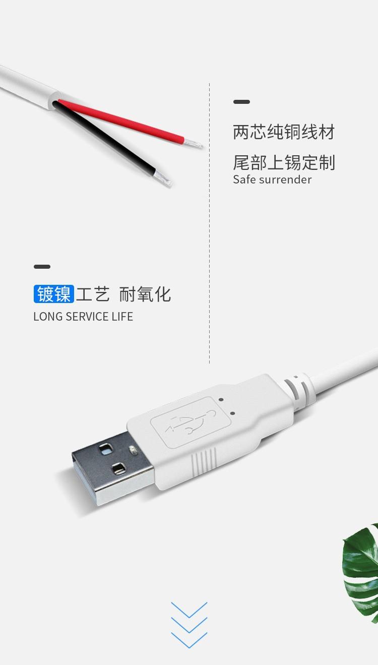 Compra 2464 24awg blanco USB un solo cabezal 2 núcleos cable de alimentación ventilador pequeño luz LED usb0.75 m macho 5v cable al por mayor en Joom.pro