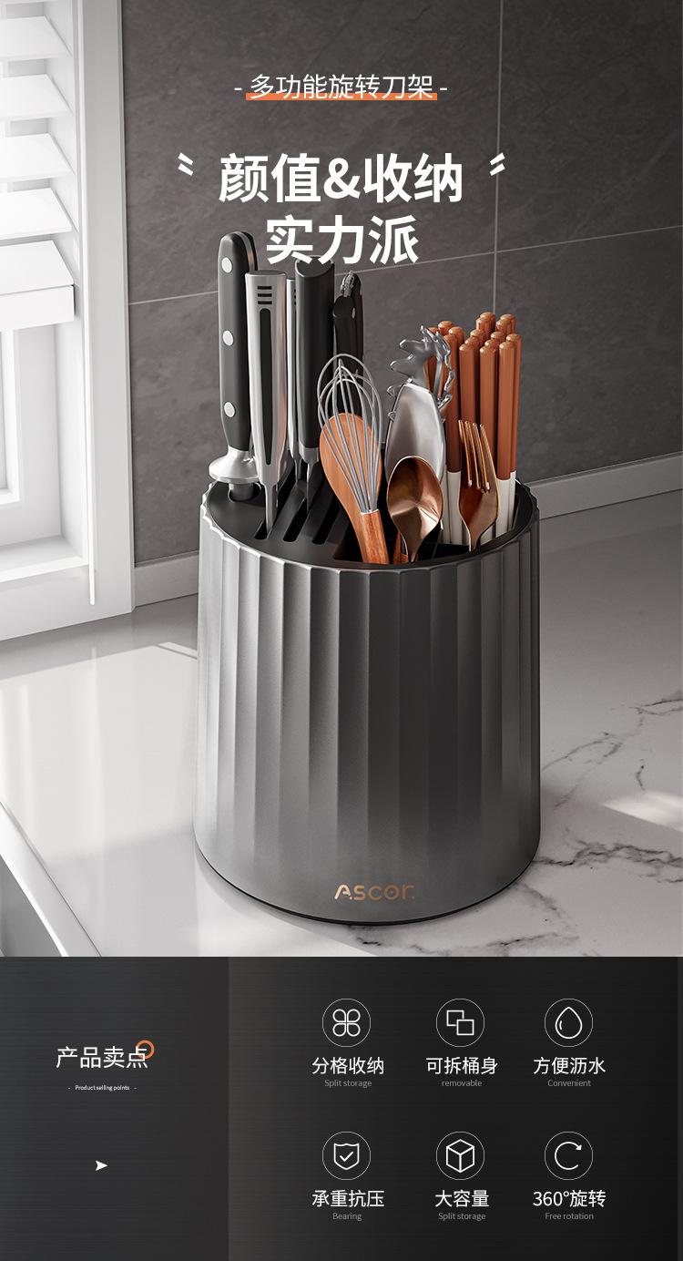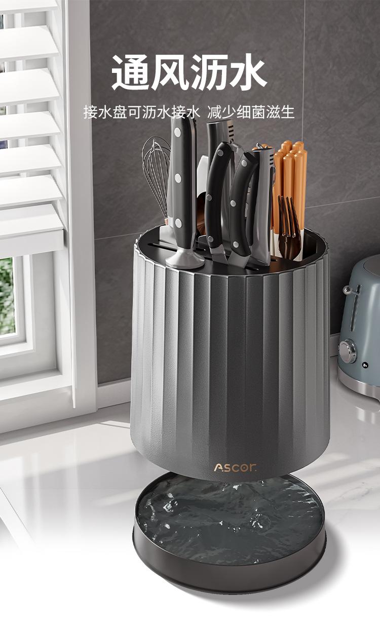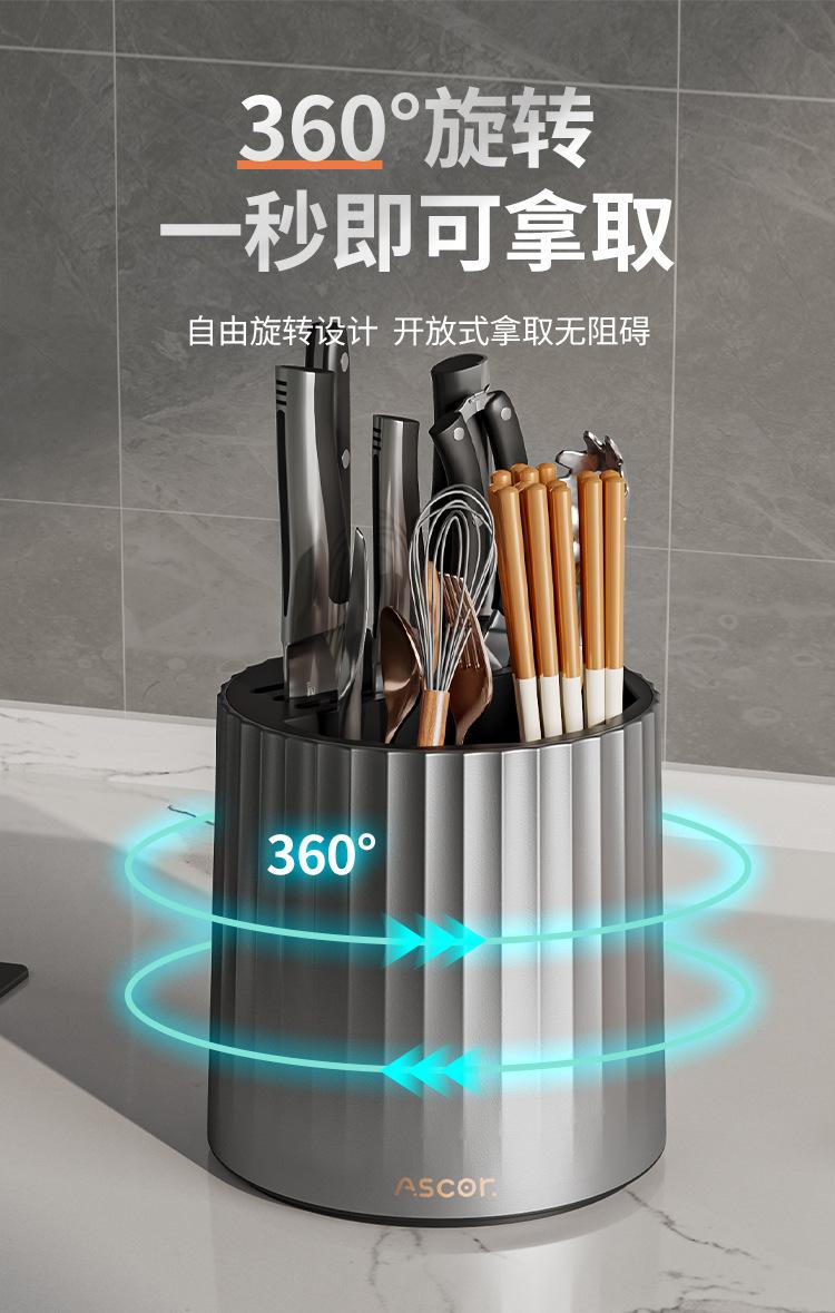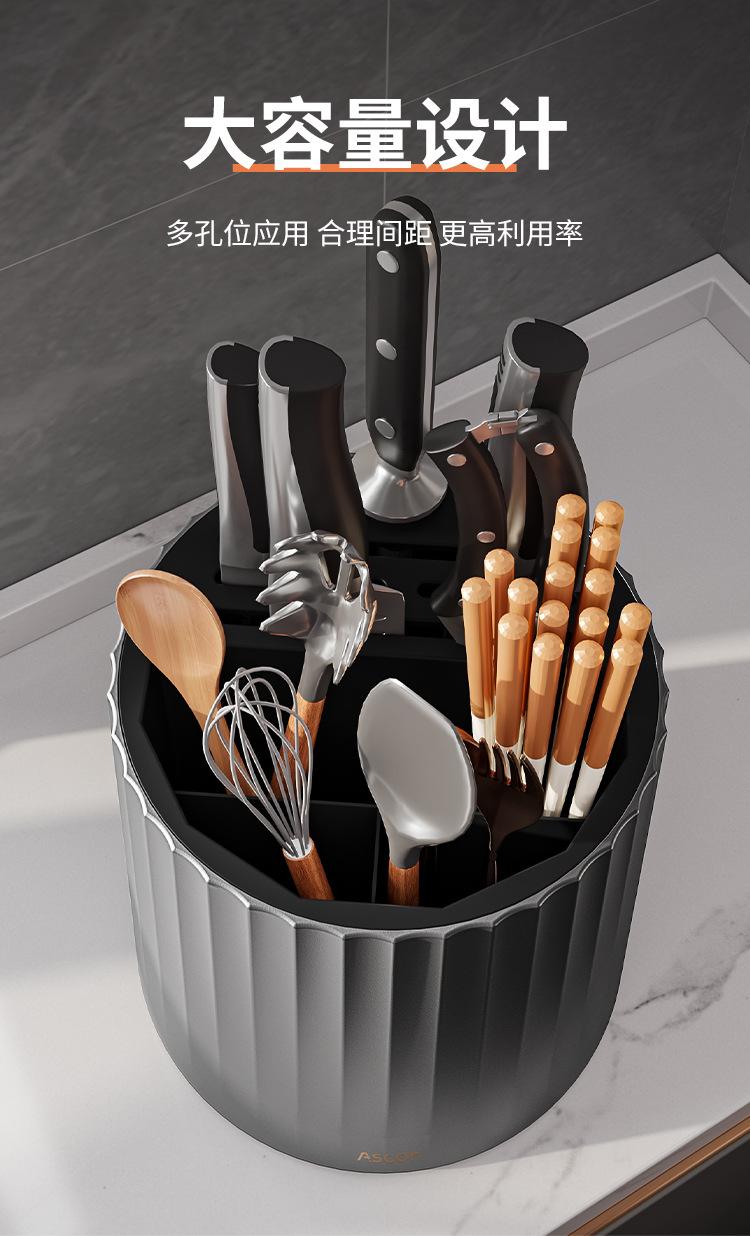 Portacuchillos Giratorio Soporte para Cucharas Tenedores Palillos de Uso Doméstico Almacenamiento Integrado Suministros de Cocina Portacuchillos Multifuncional Estante de Almacenamiento