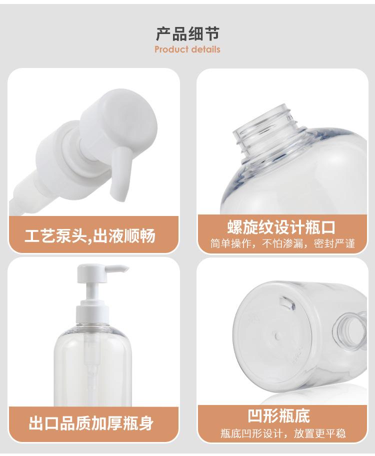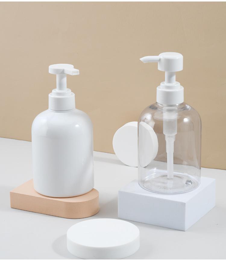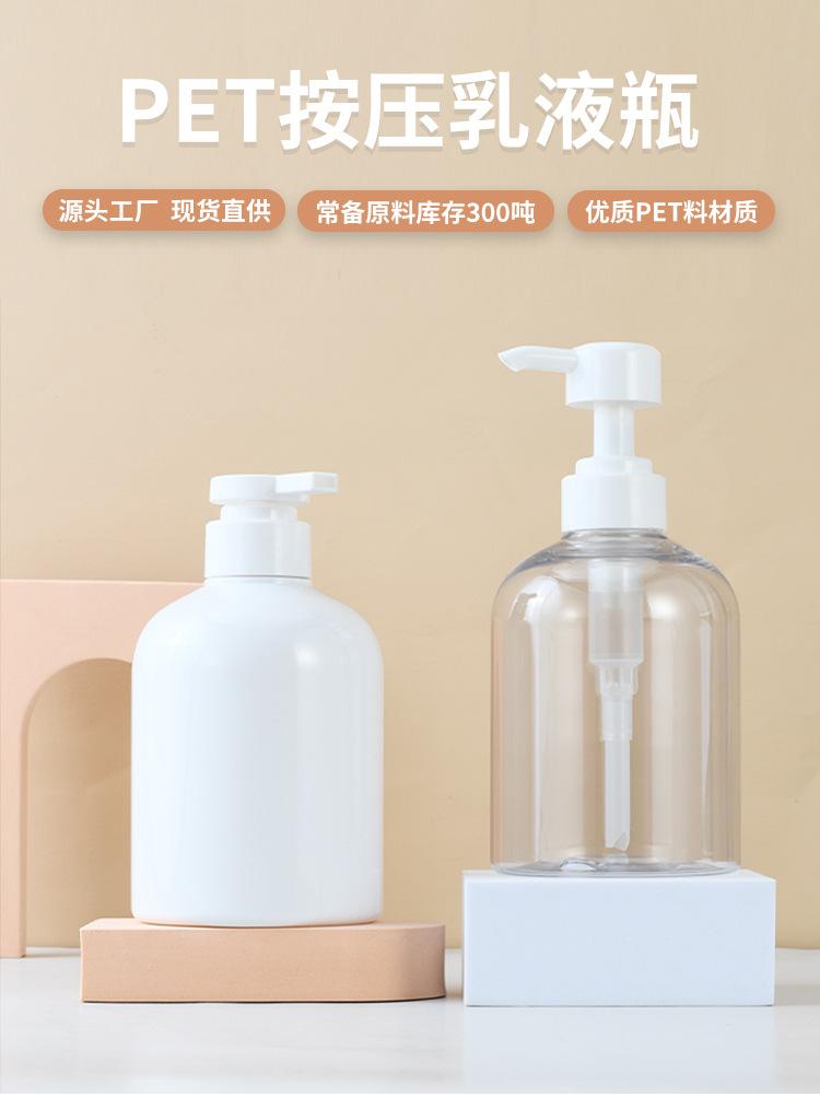 Botella de gel de ducha de 500 ml estilo europeo, envase de plástico PET, botella de champú corta y rechoncha, botella de hombro redondo para productos químicos diarios, botella de acondicionador para el cabello, botella de gel de ducha; botella de champú; botella de acondicionador para el cabello, envase de plástico, botella de plástico, bote
