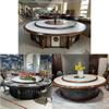 Mesa de Comedor de Pizarra Personalizada, Mesa de Comedor Elegante, Plato Giratorio Automático Redondo Grande, Caja Eléctrica para Hotel, Mesa Redonda Grande, Combinación para 15 Personas