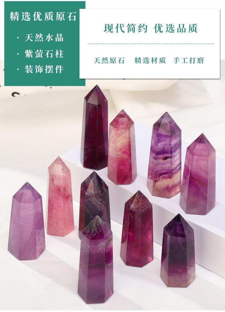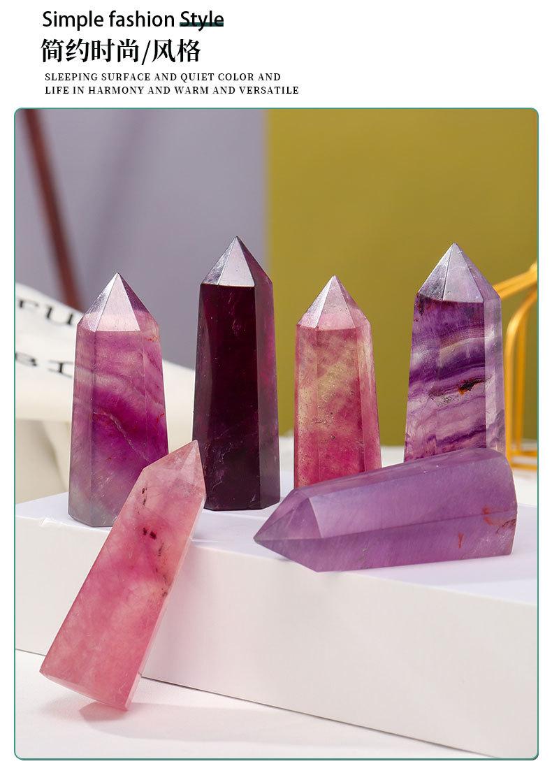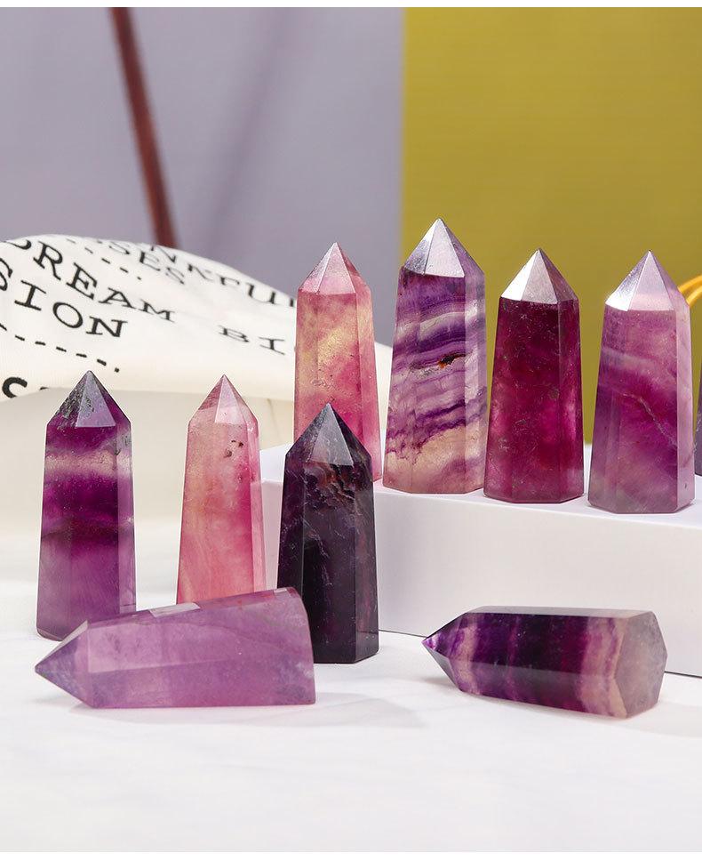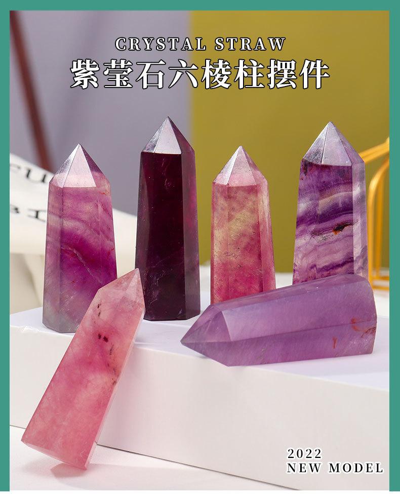 Compra Columna de cristal natural de fluorita púrpura, prisma hexagonal de una sola punta, columna de fluorita de color rayado, adornos decorativos para el hogar, fluorita al por mayor al por mayor en Joom.pro