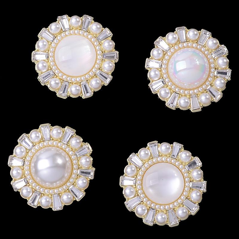 Redondo Imitación Ojo de Gato Color Concha Perla Flor Placa Hebilla Diamante Aleación Accesorios Joyería Moda Ropa Galvanoplastia Accesorios Material