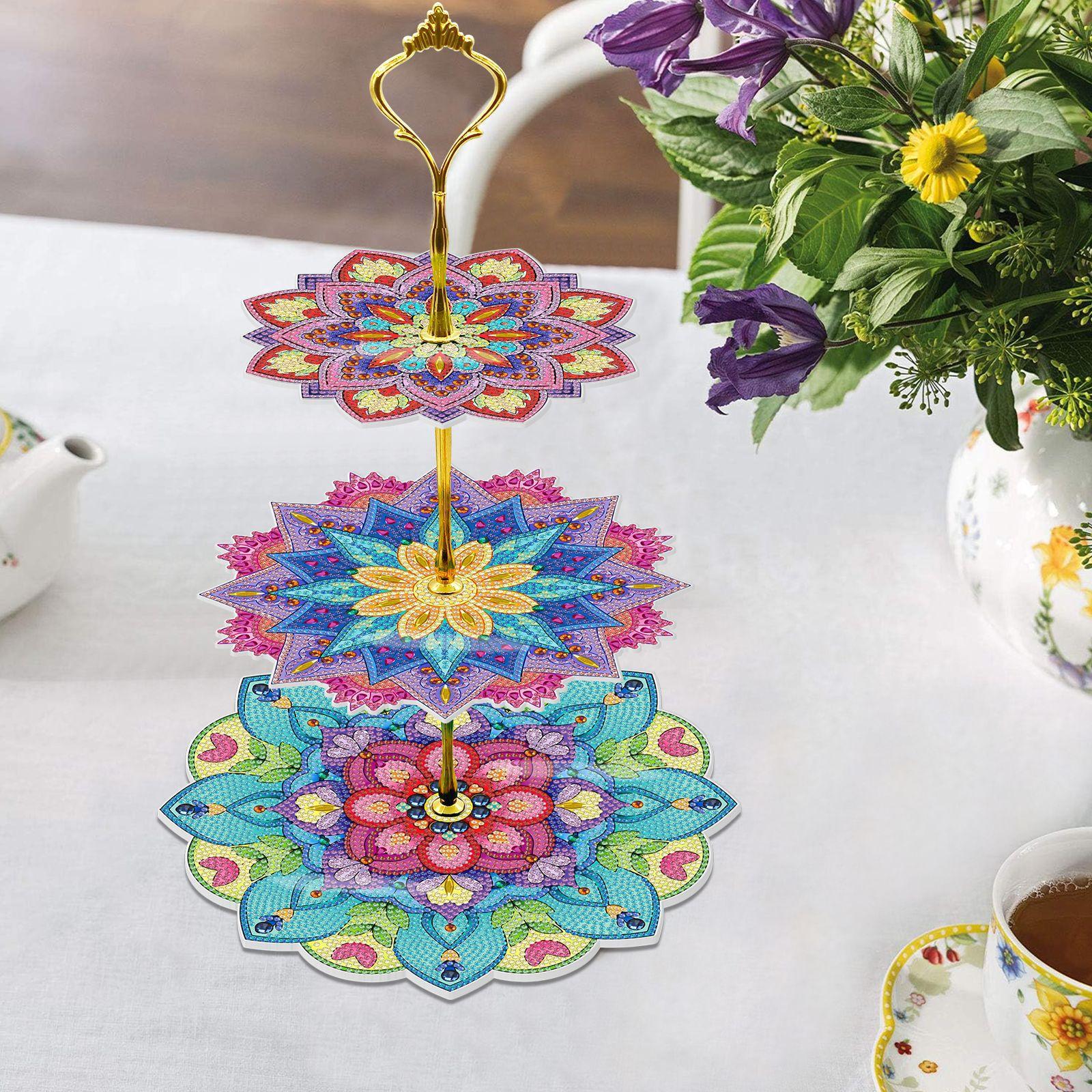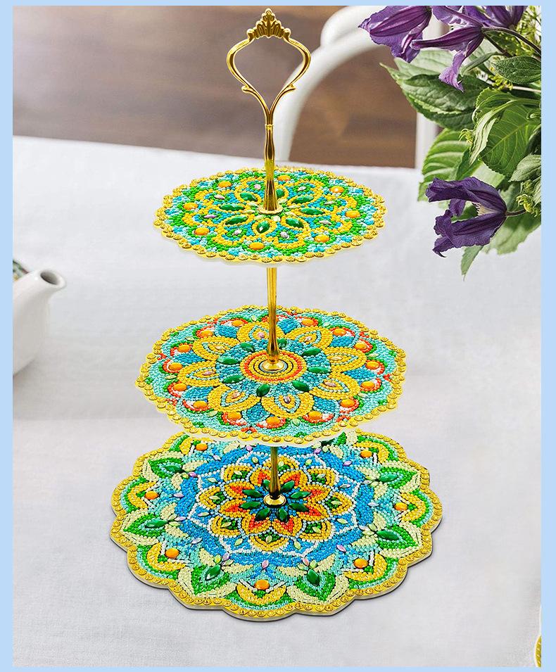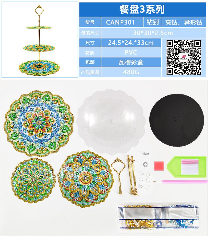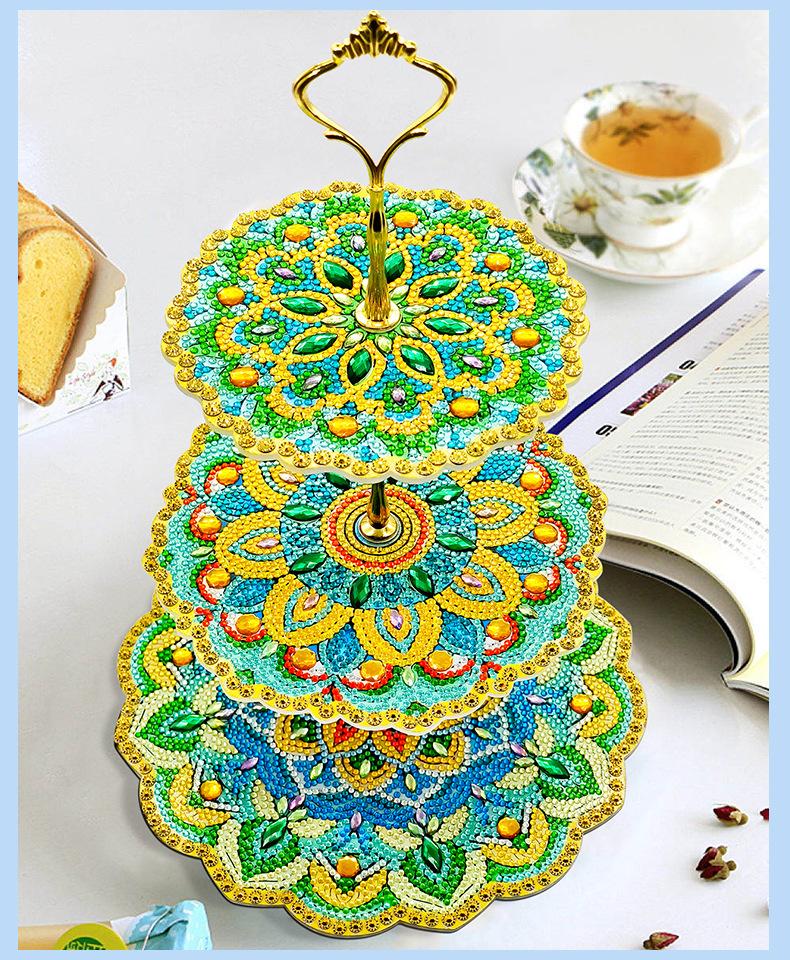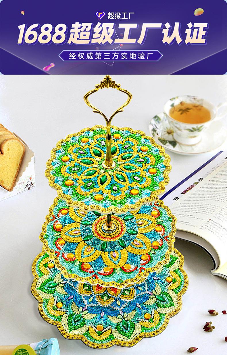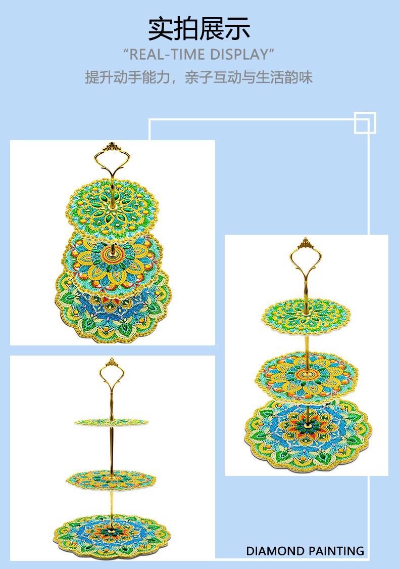 Pintura de diamantes DIY transfronteriza soporte tridimensional de tres capas plato de cena pintura de diamantes mandala 5d bordado de diamantes soporte para postres