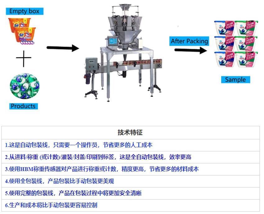 1. Completar automáticamente la alimentación, pesaje, llenado, recubrimiento de cajas, codificación y etiquetado.