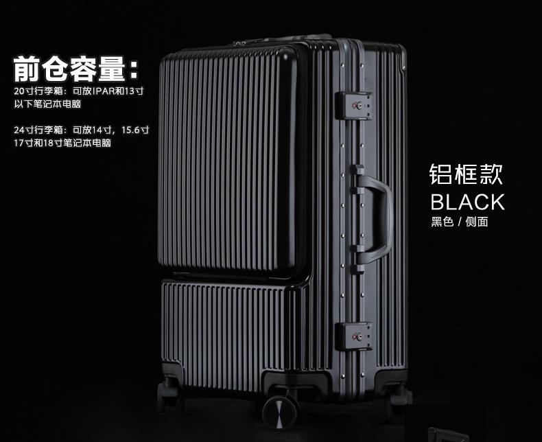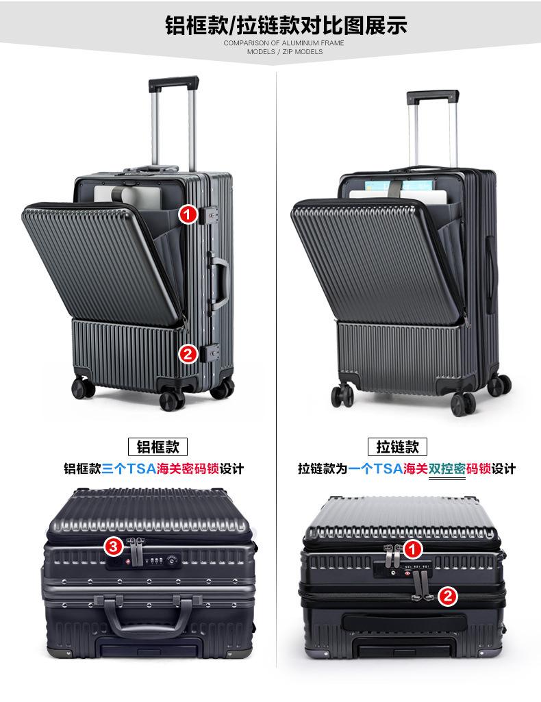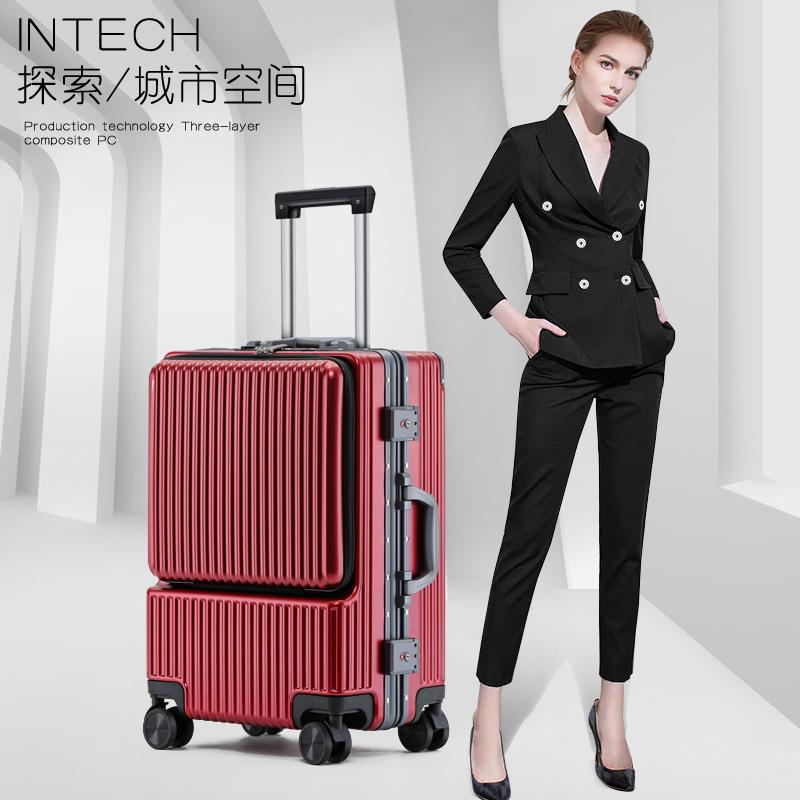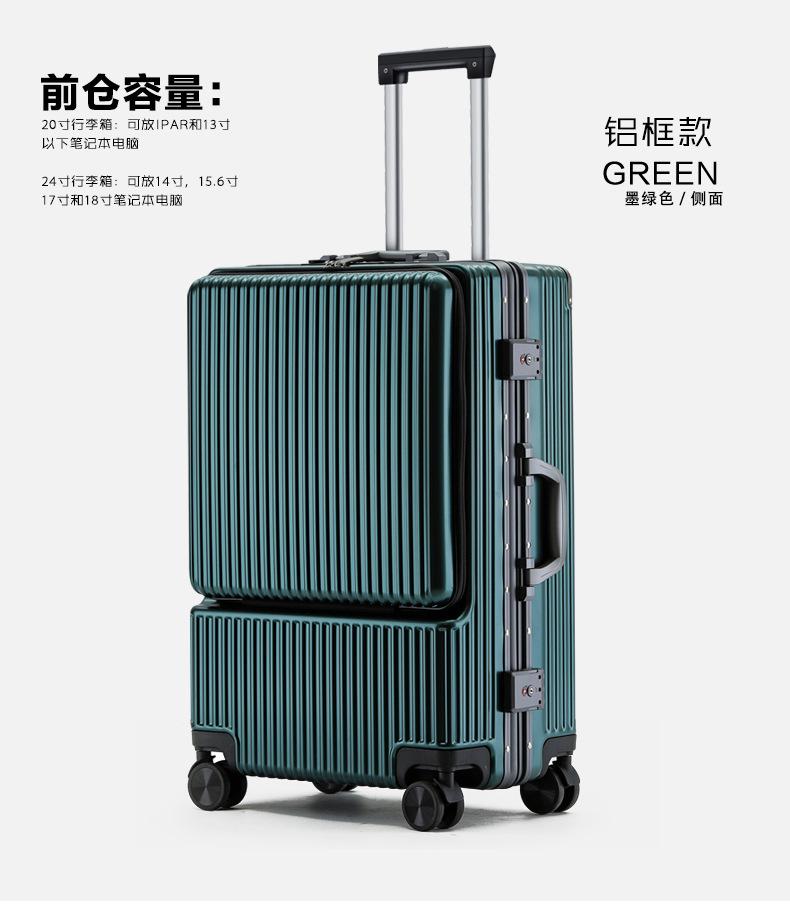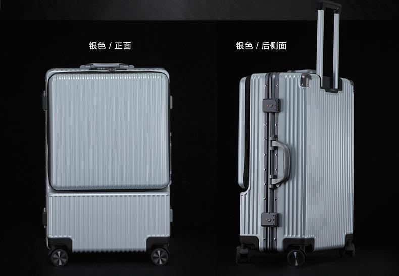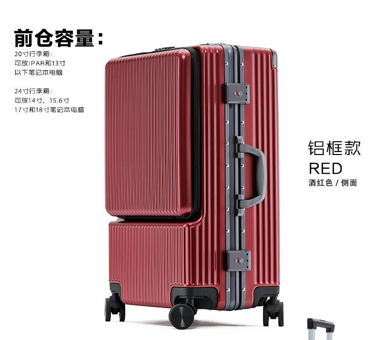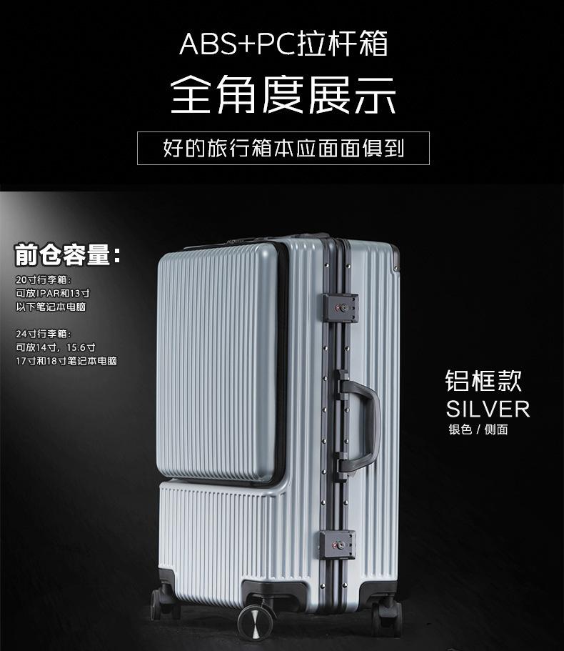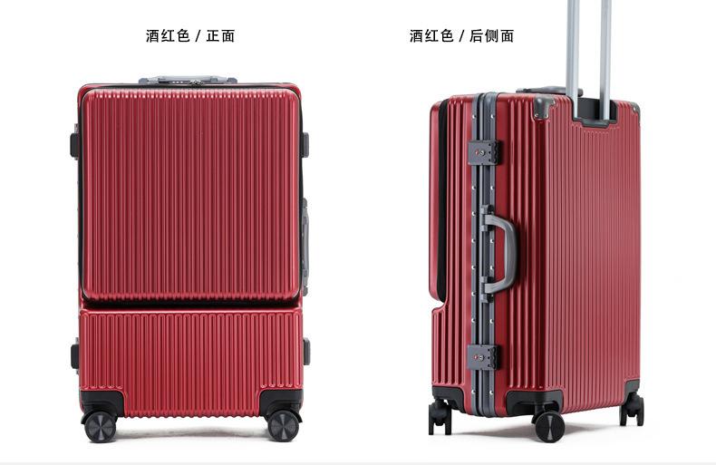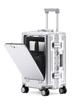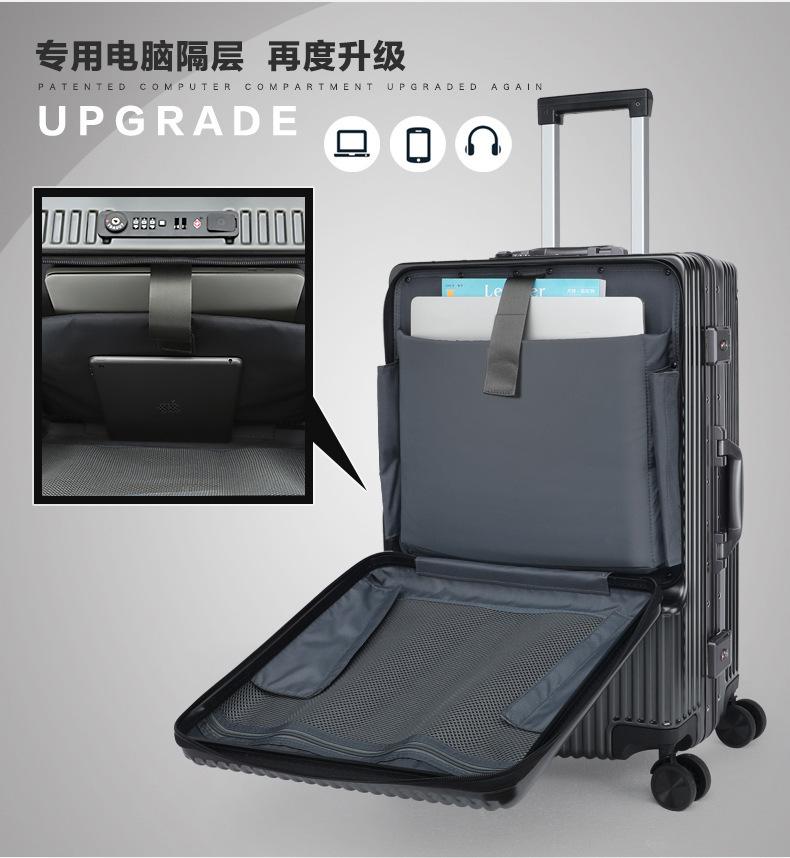 Maleta de 20 pulgadas con tapa frontal abierta y marco de aluminio, maleta con puerto de carga USB, maleta con ruedas silenciosas, maleta de embarque