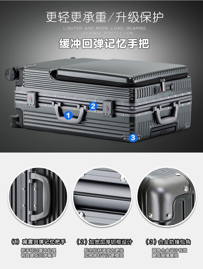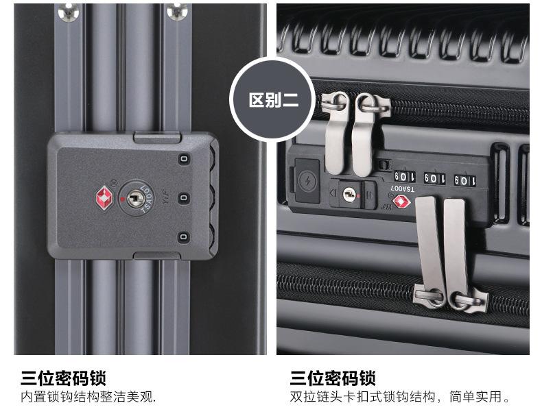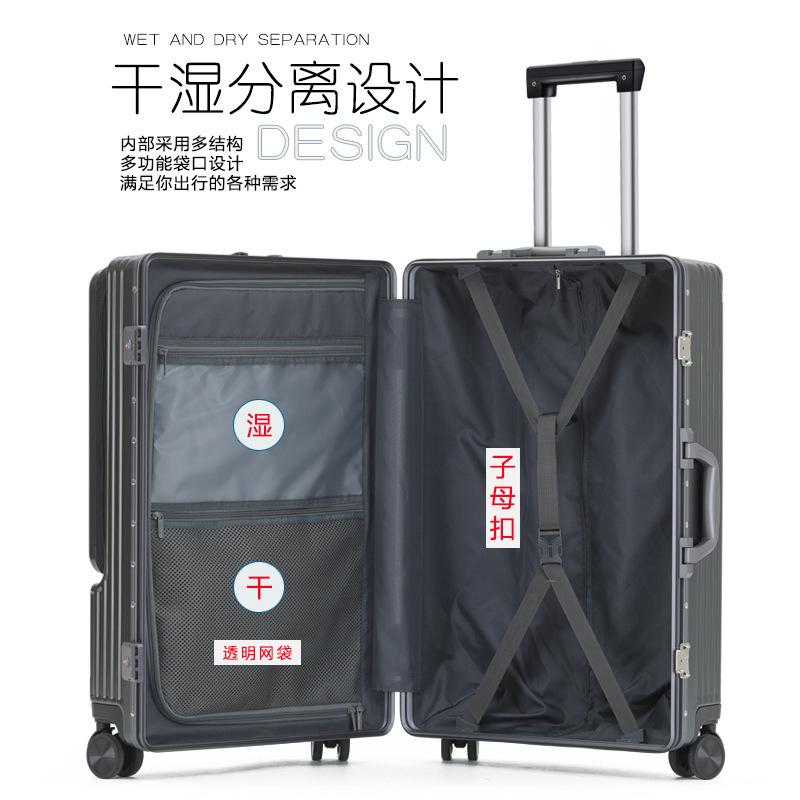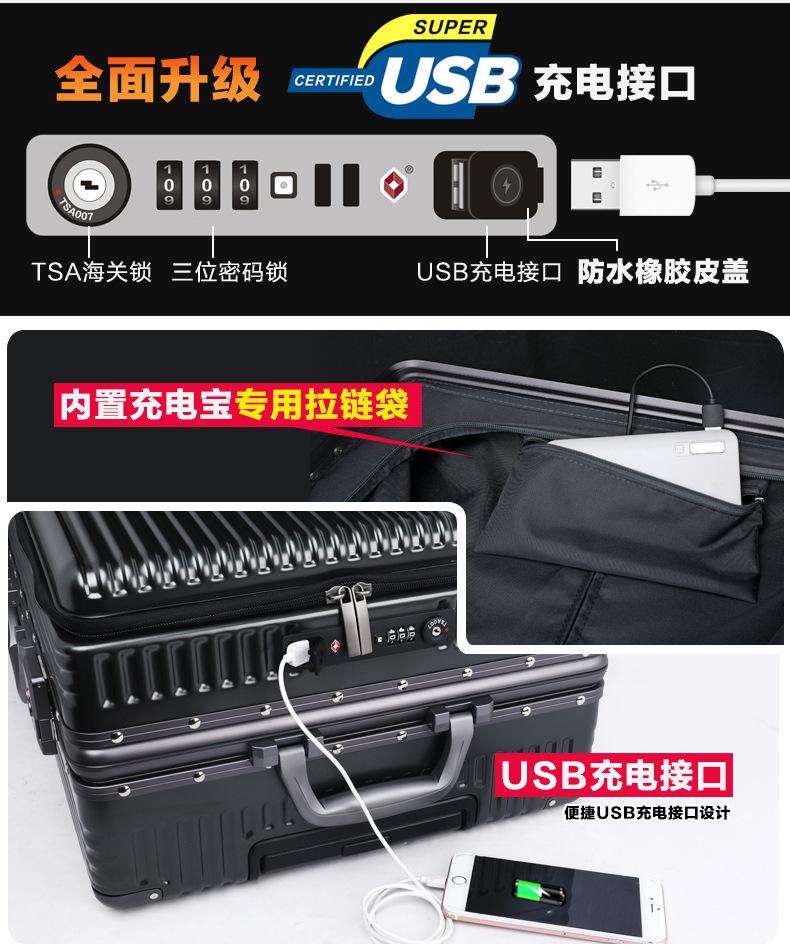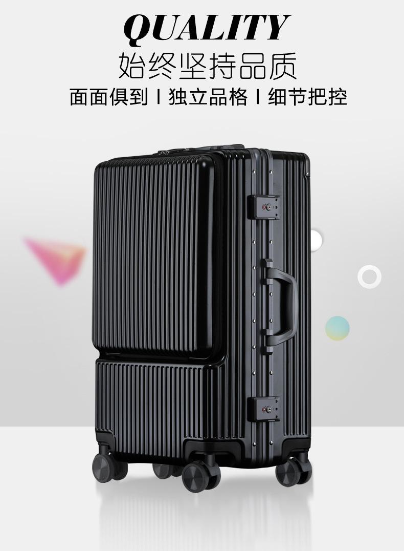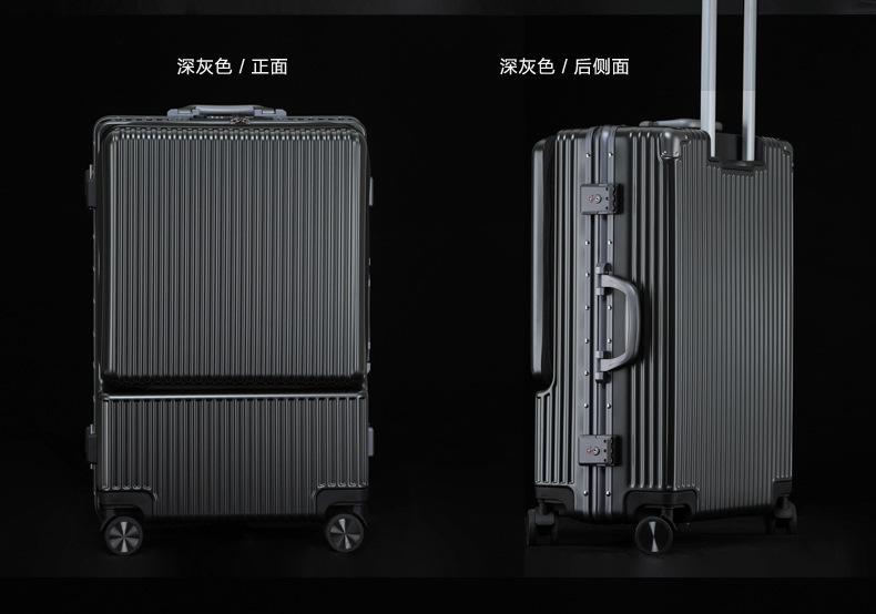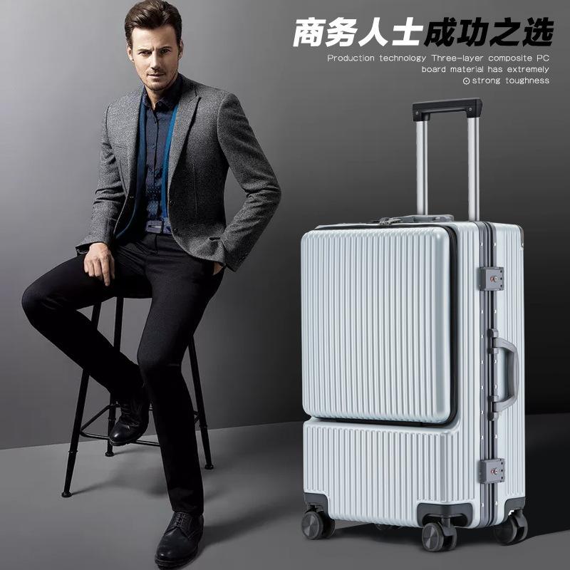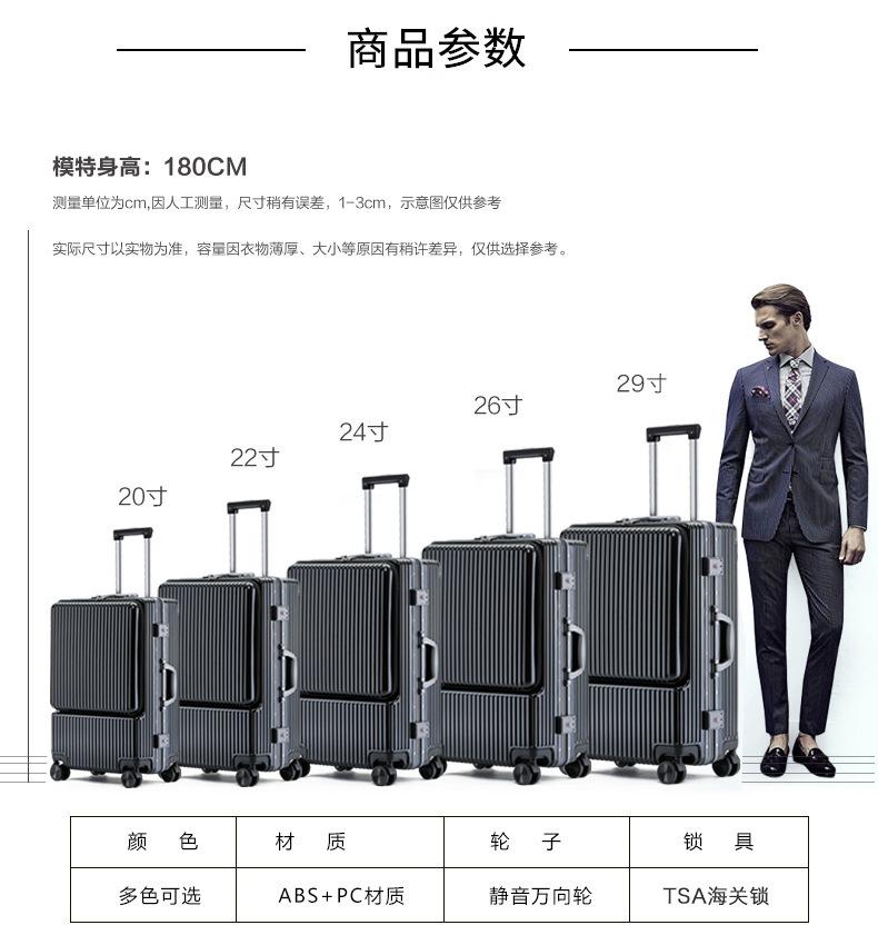 Maleta de 20 pulgadas con tapa frontal abierta y marco de aluminio, maleta con puerto de carga USB, maleta con ruedas silenciosas, maleta de embarque