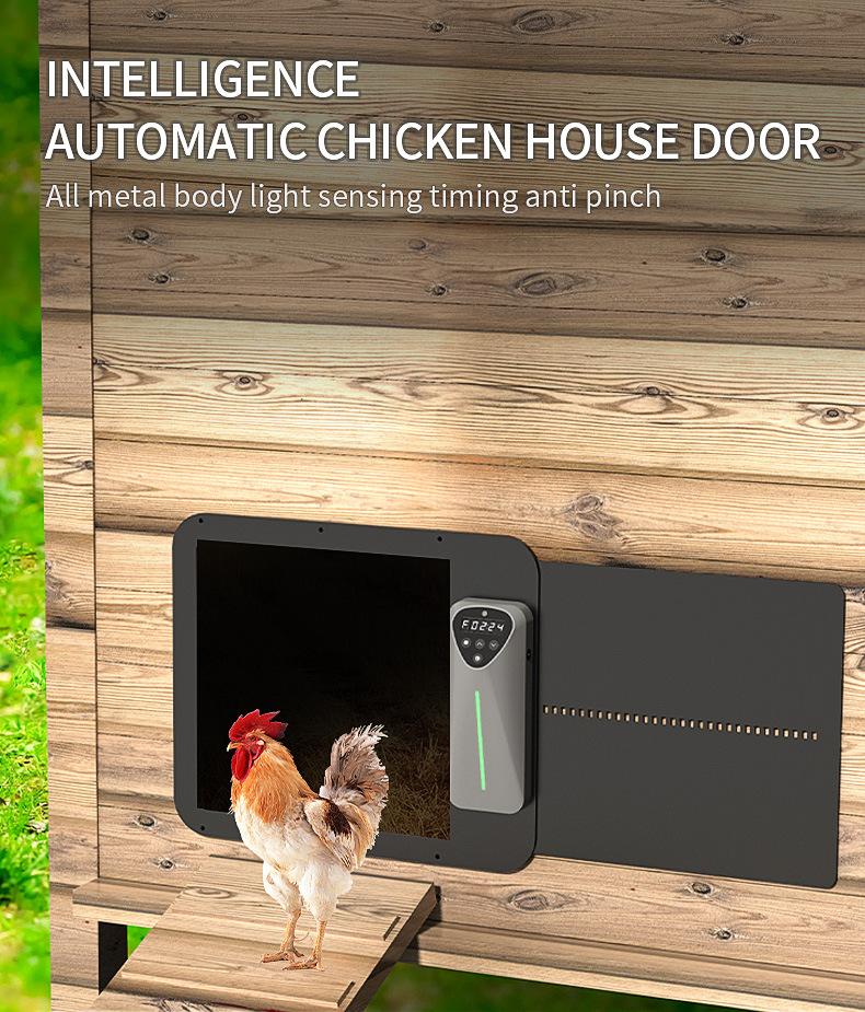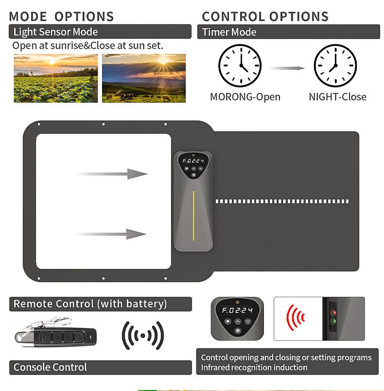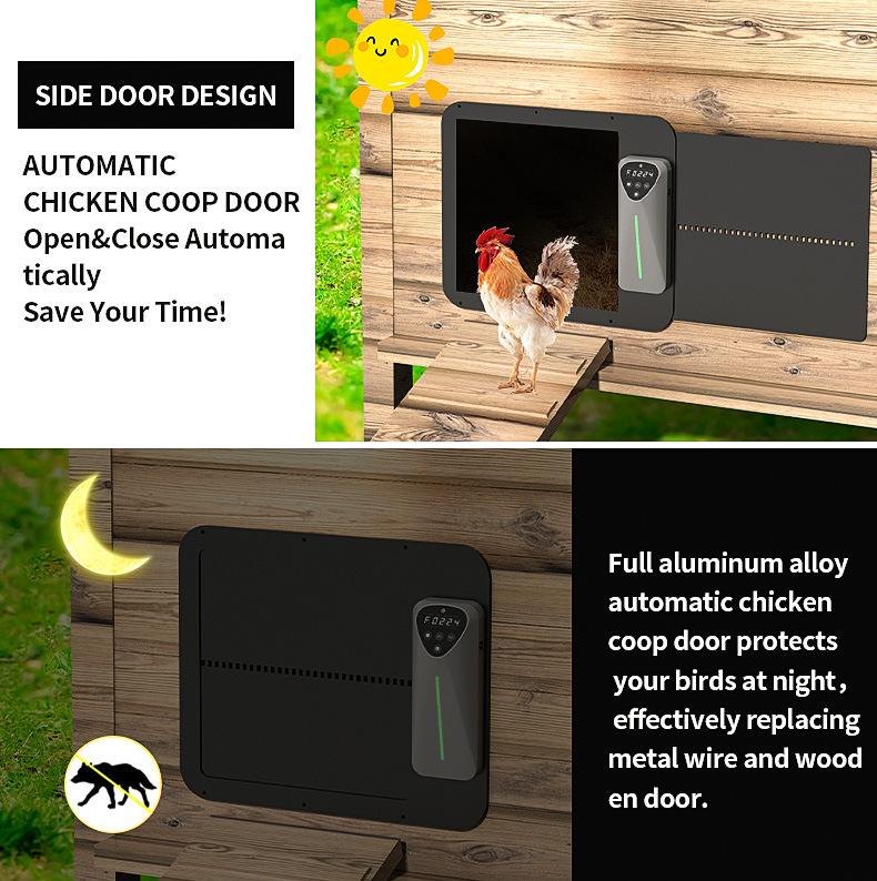 Puerta de Gallinero Automática con Sensor de Luz Transfronteriza Inteligente para Mascotas Carga Solar Apertura Lateral con Control Remoto por Aplicación Puerta de Jaula para Gallinas