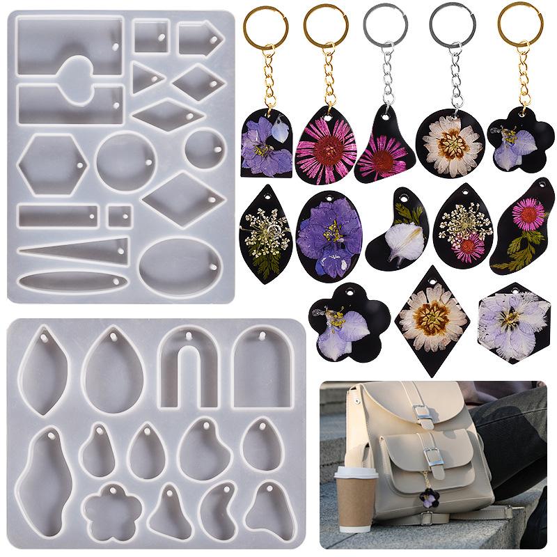 Molde de silicona para pendientes de resina con forma de gota de cristal de amapola, colgante triangular ovalado de corazón a corazón