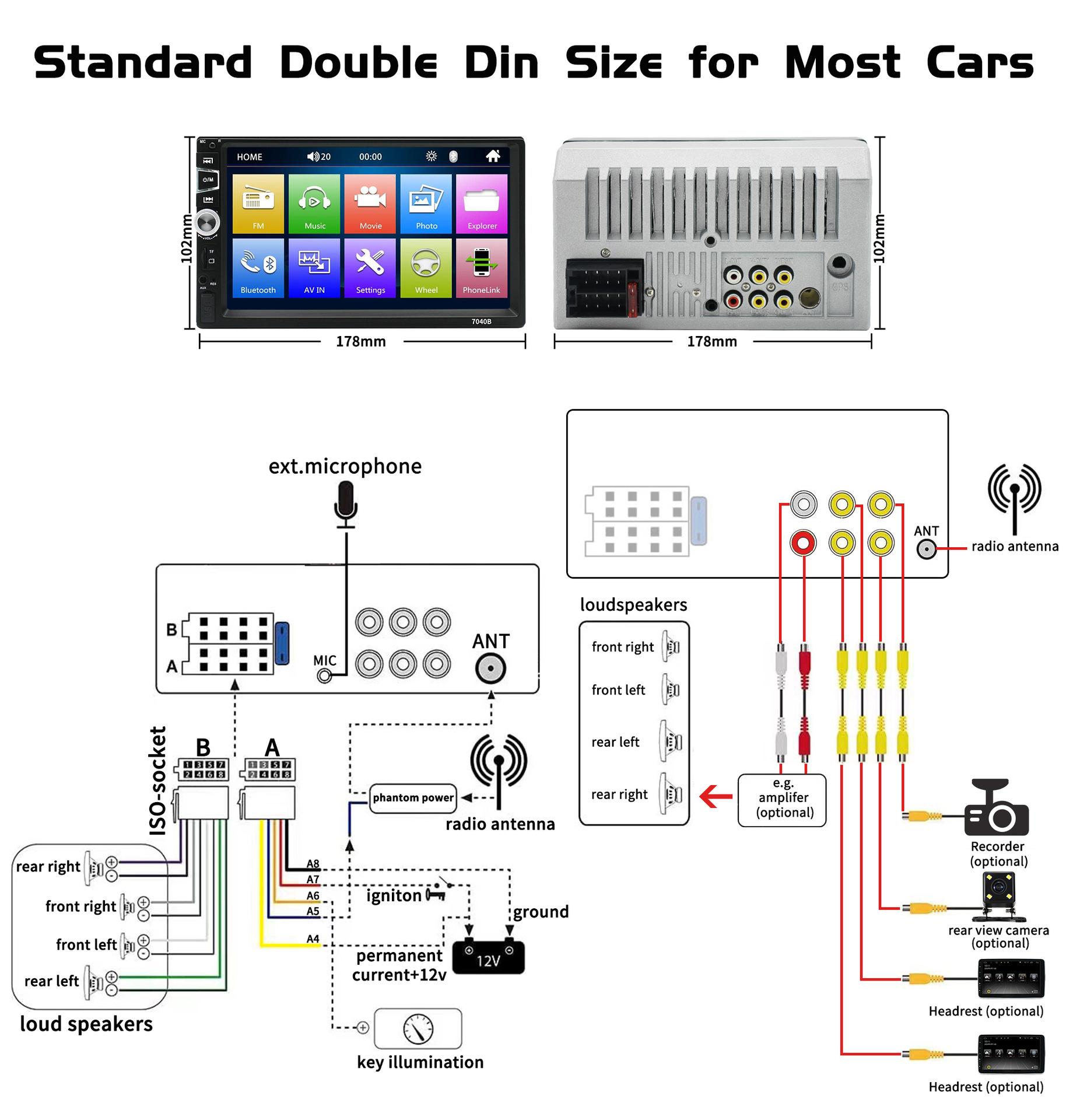 Reproductor de coche Cross-border 7040B con tarjeta USB, radio de música, Bluetooth, manos libres, reproductor de MP3 corto