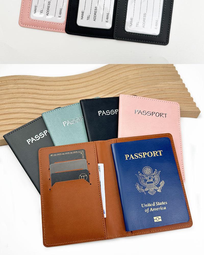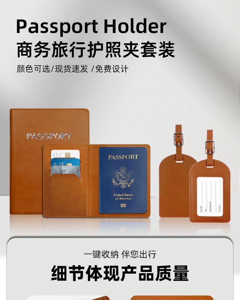Regalo de viaje de negocios de cuero PU con punto puede agregar LOGO juego de tarjetero para pasaporte billetera para pasaporte cubierta protectora juego de etiquetas para equipaje