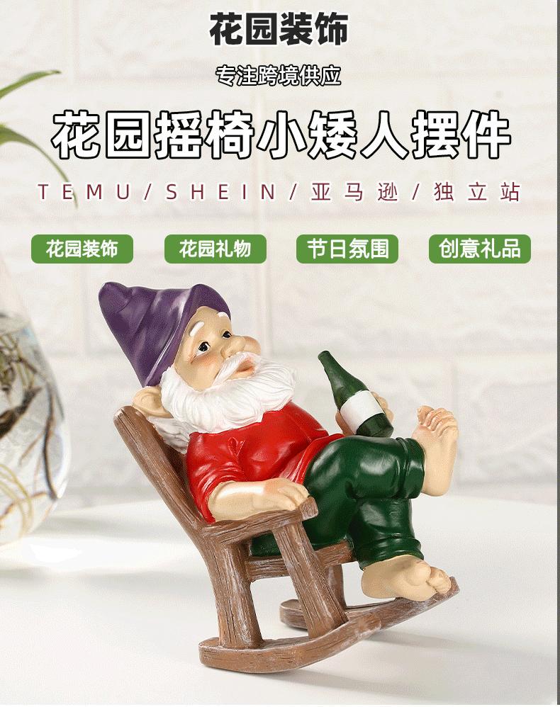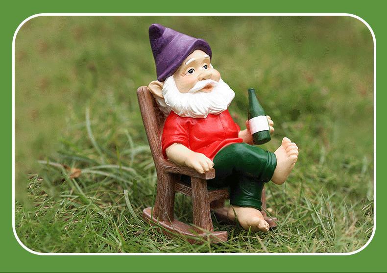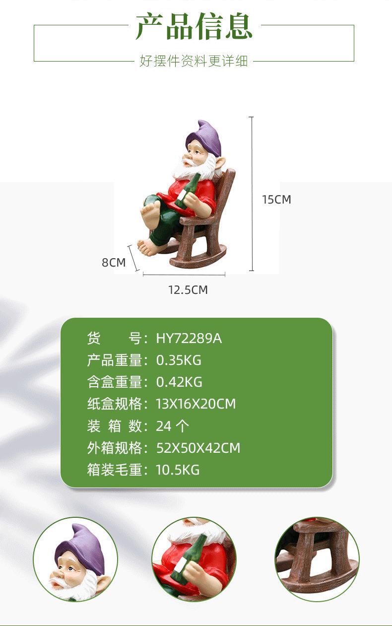 Proveedor Transfronterizo Silla Mecedora de Jardín Adornos de Enanos Decoración Exterior Regalos Festivos Artesanías de Resina