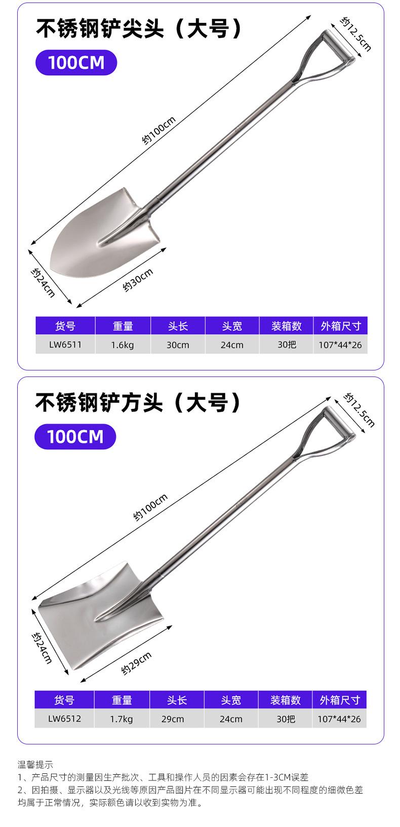 Stainless steel shovel tip 80cm, 0.9kg, Stainless steel shovel square head 80cm, 0.95kg, Stainless steel shove...