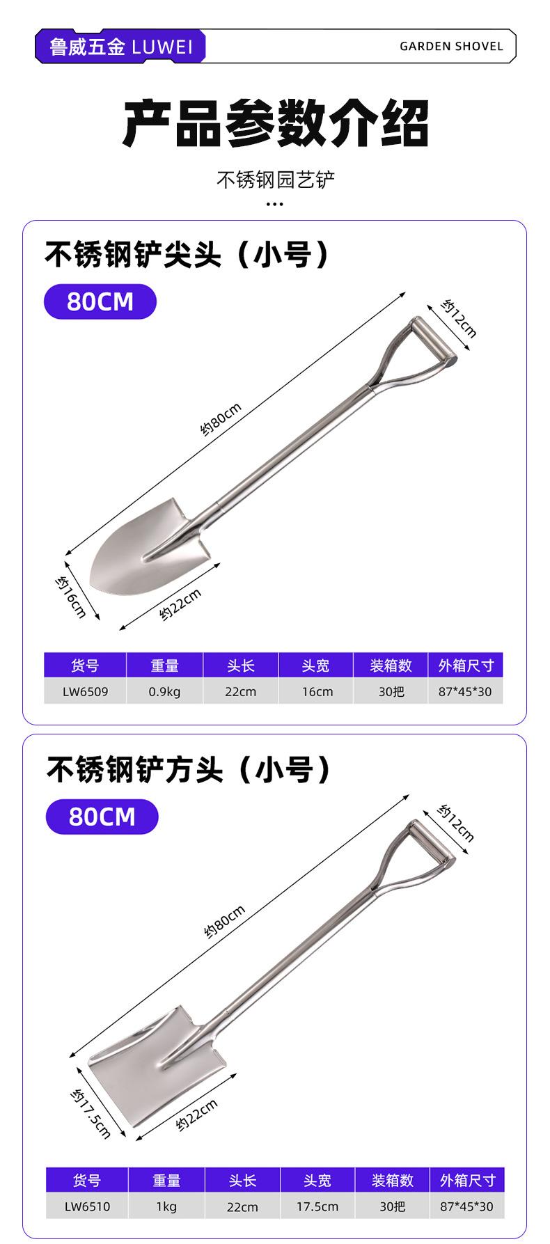 Fábrica al por mayor Luwei hardware acero inoxidable pala conjunta herramientas de jardinería pala pala agrícola pala pala