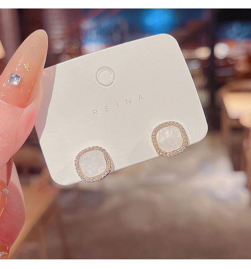 Pendientes elegantes de moda con textura de aceite y gota cuadrada de aguja de plata S925 para mujer, pendientes Super Flash con microincrustaciones de diamantes, joyería para las orejas al por mayor