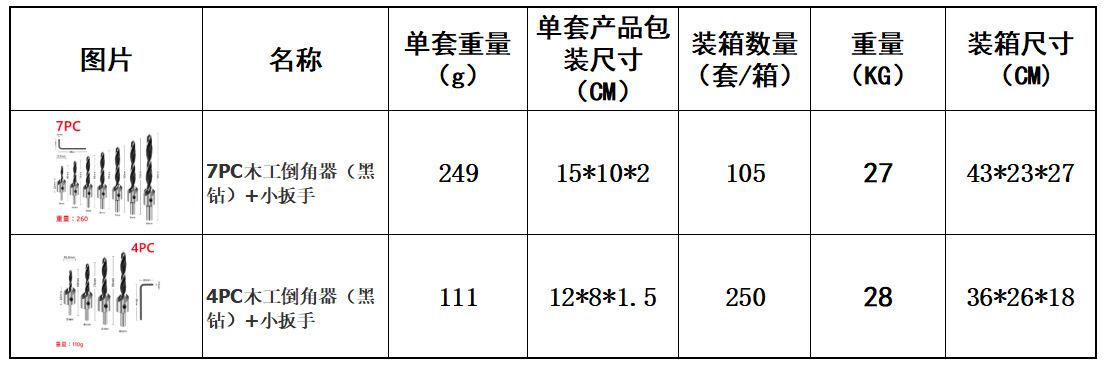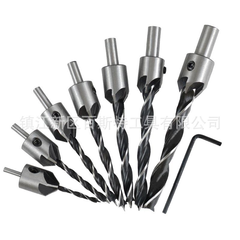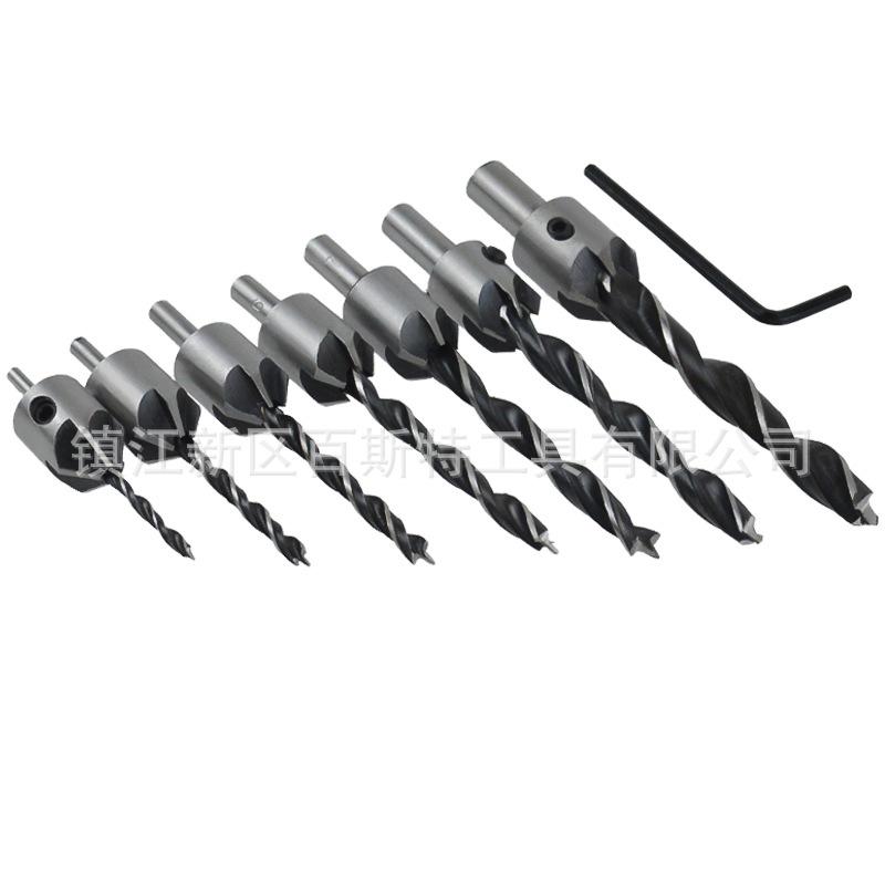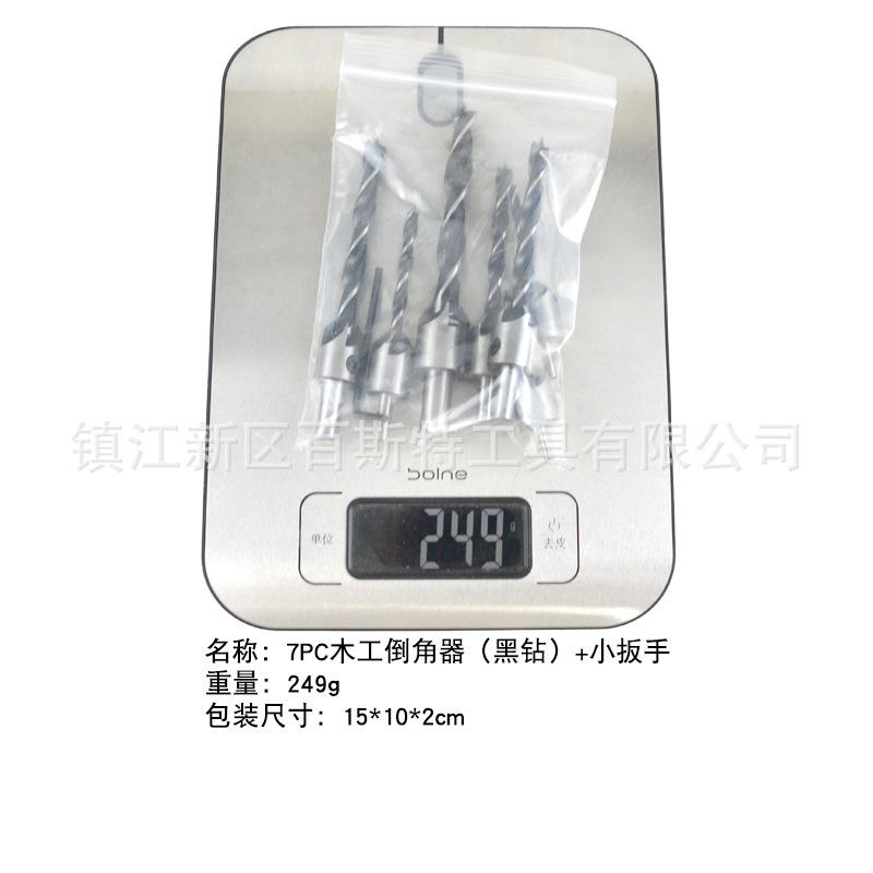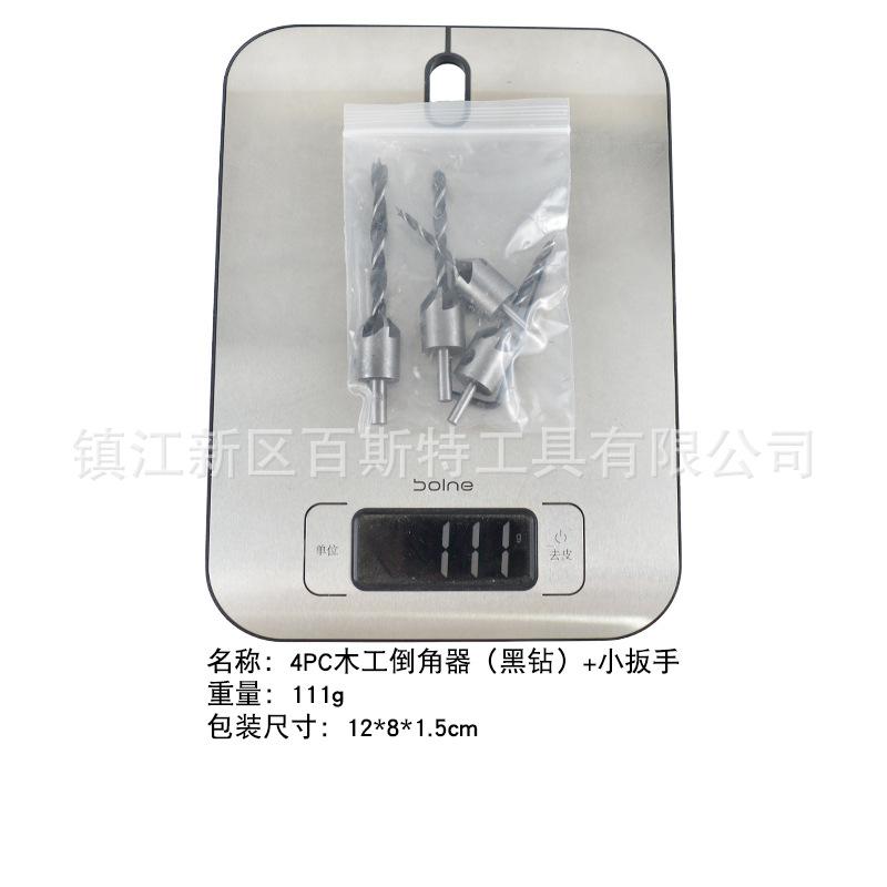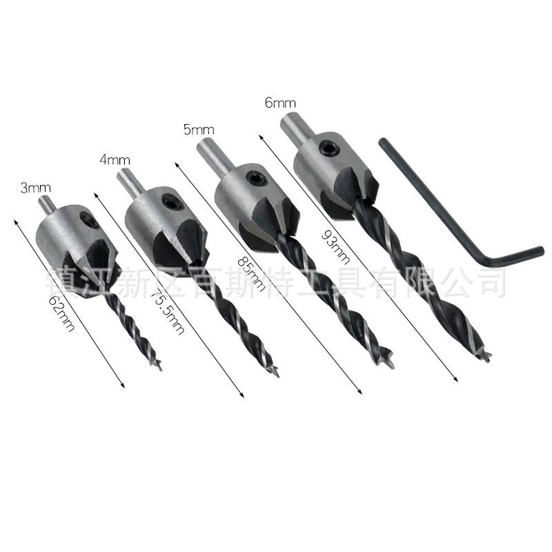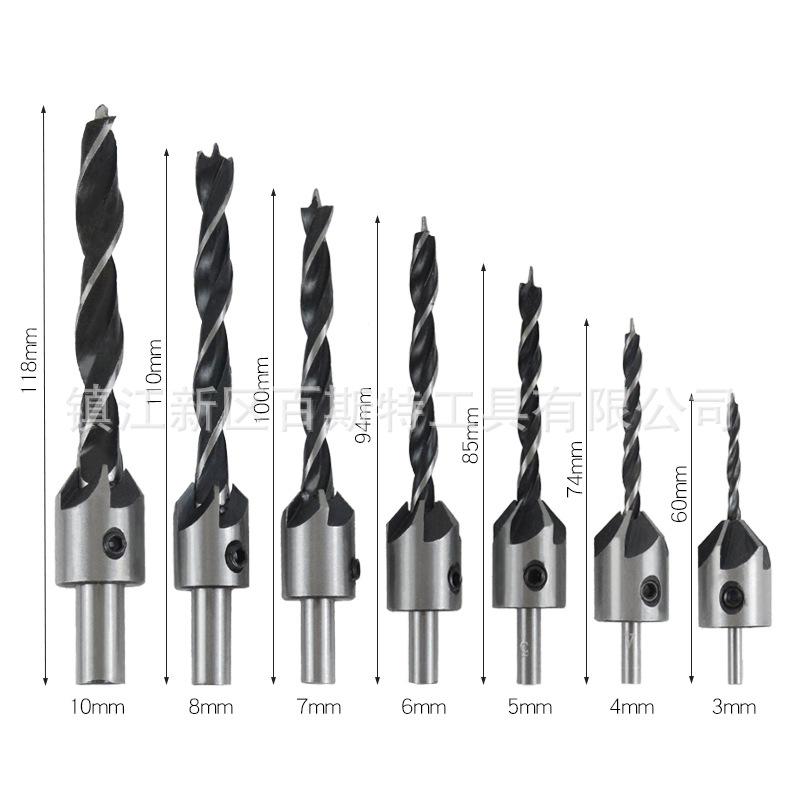 Material: La broca para madera de tres puntas es de acero al carbono, y el cuerpo de la broca achaflanadora central es de acero No. 45.