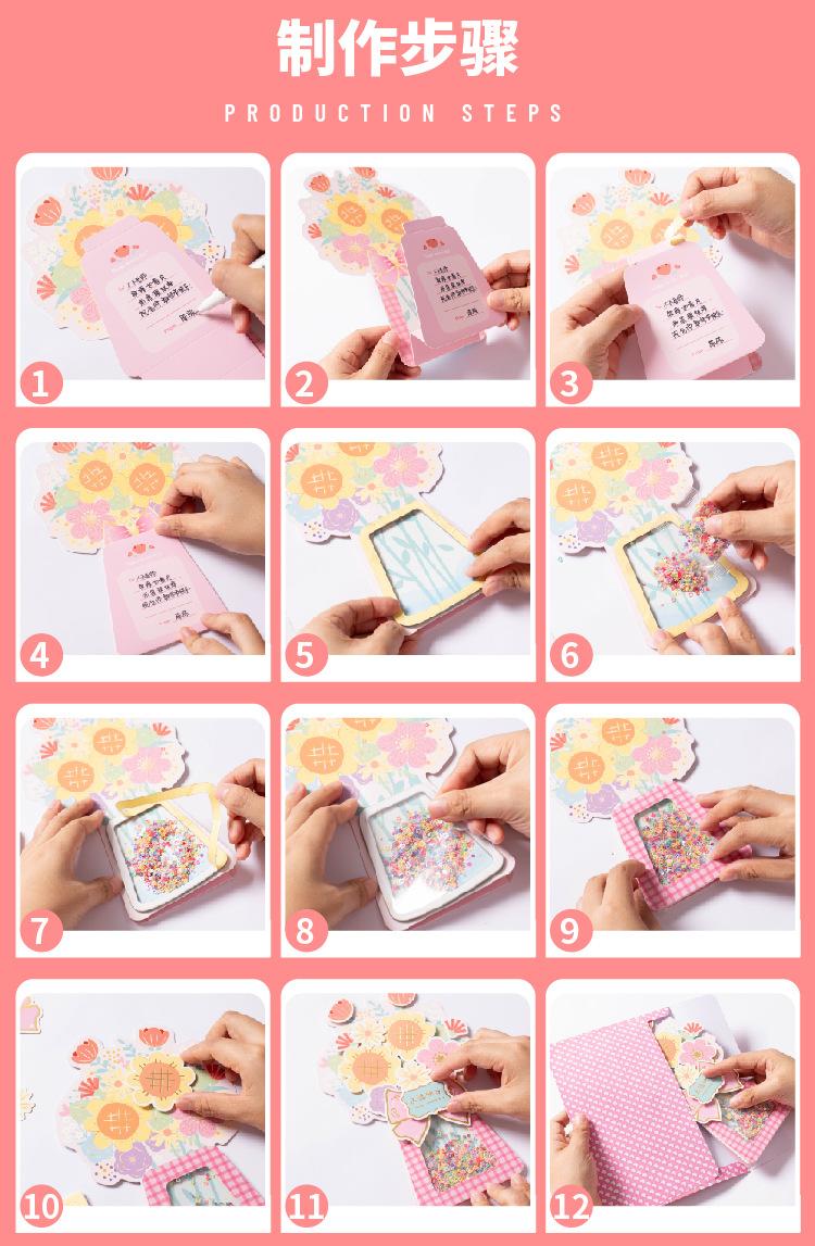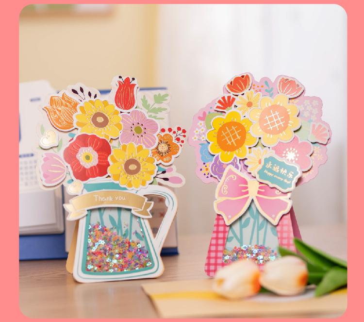 Three-dimensional bronzing flower greeting card-random, Three-dimensional bronzing flower greeting card-pink, ...