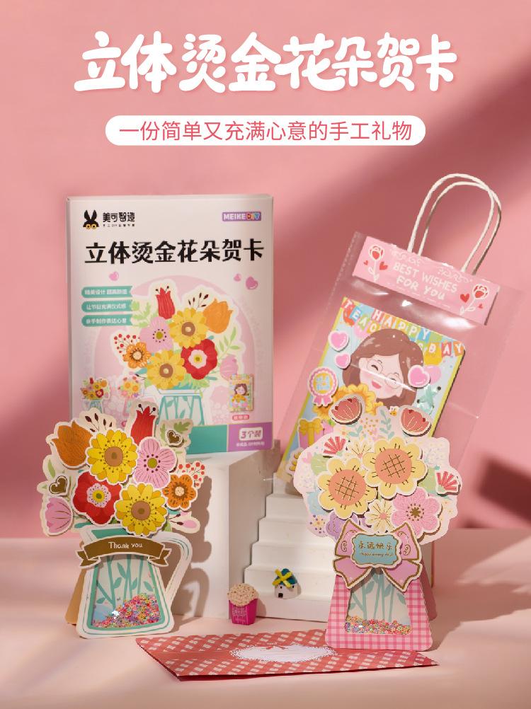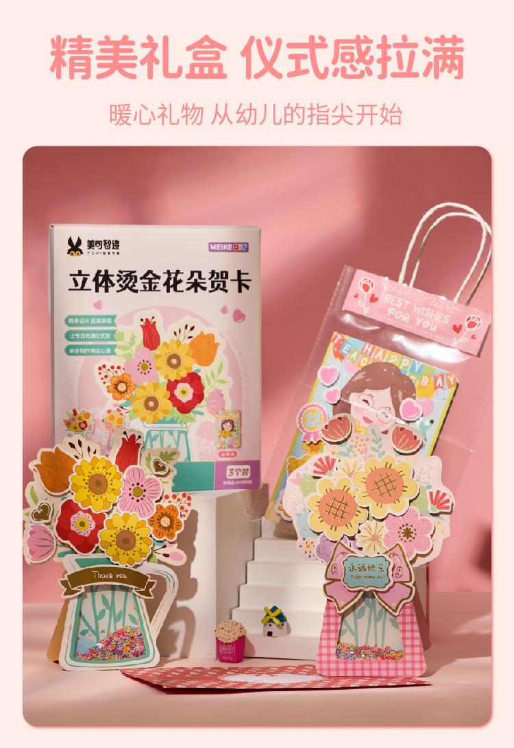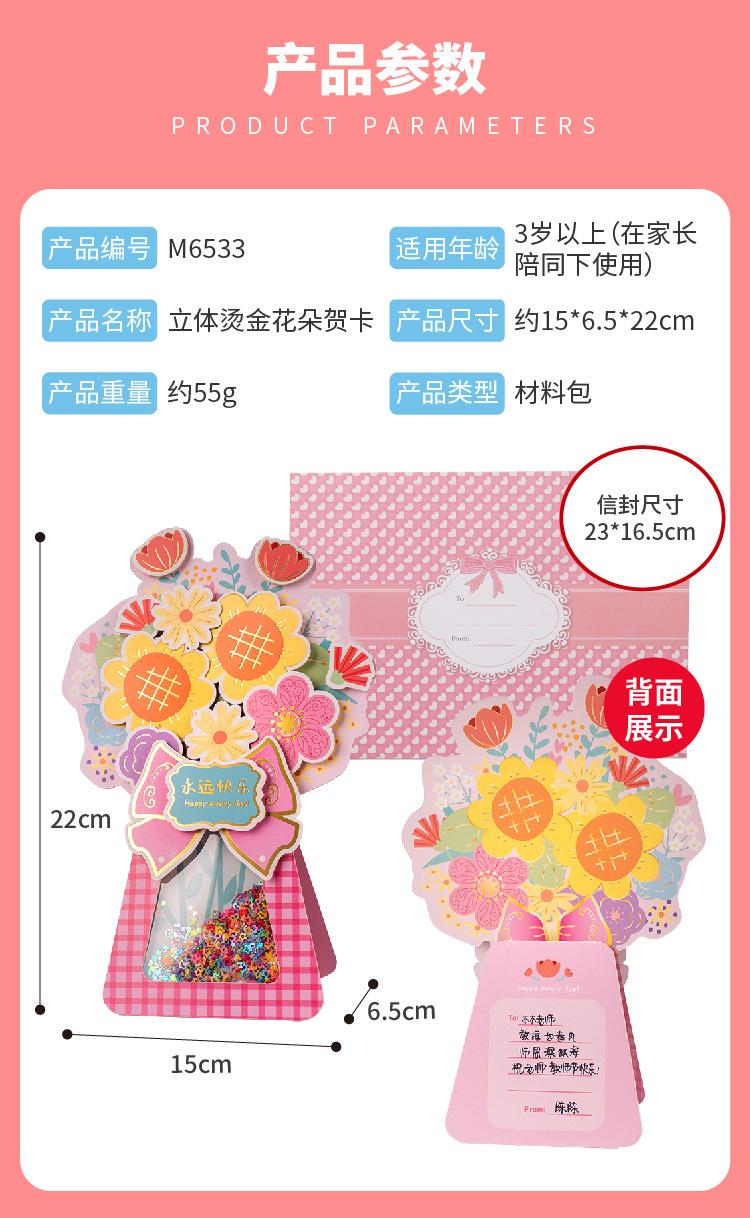 Día de la Mujer Tarjeta de Felicitación de Flor Tridimensional Estampada en Oro Materiales DIY Hechos a Mano Juguetes de Regalo para Jardín de Niños