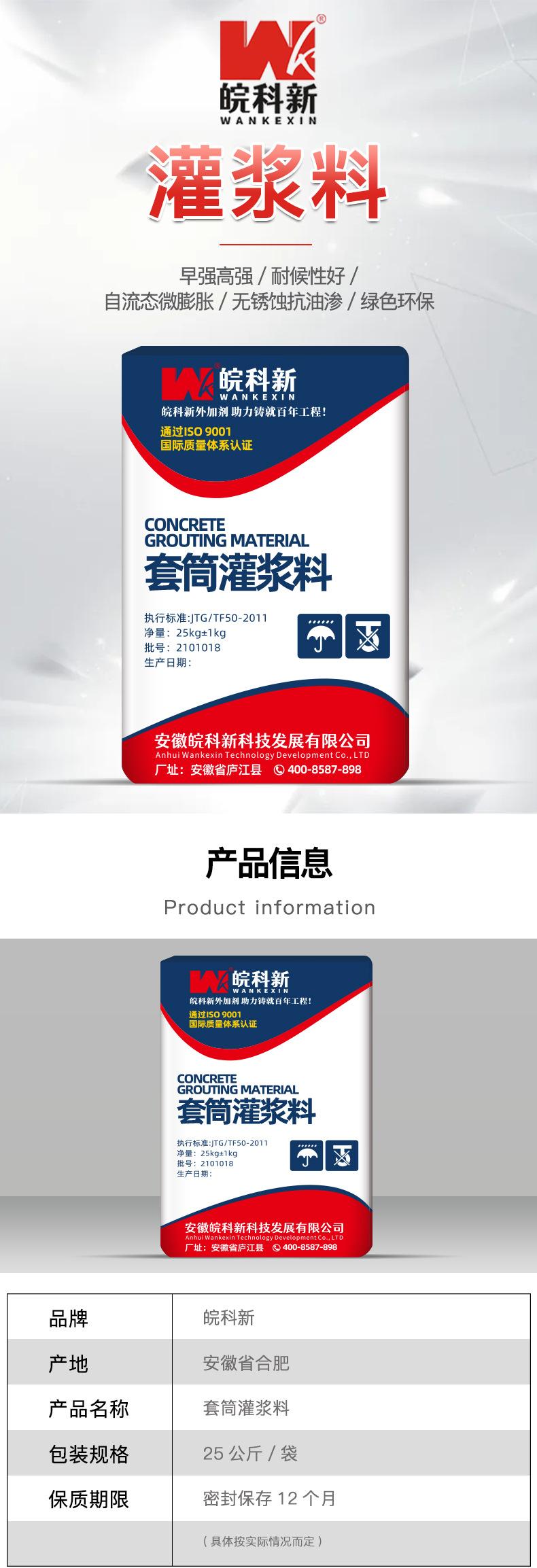 El fabricante de Anhui suministra directamente material especial de lechada para manguito C40/H40, material de lechada de alta resistencia sin retracción, base de equipos