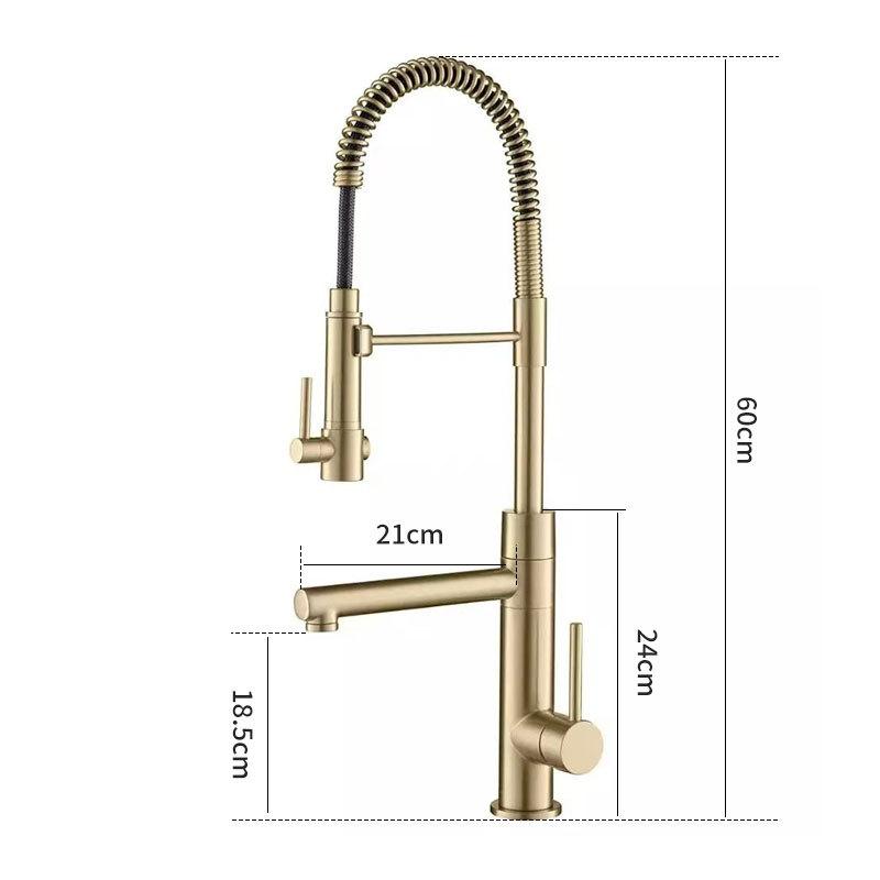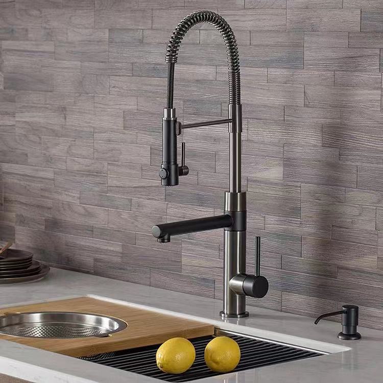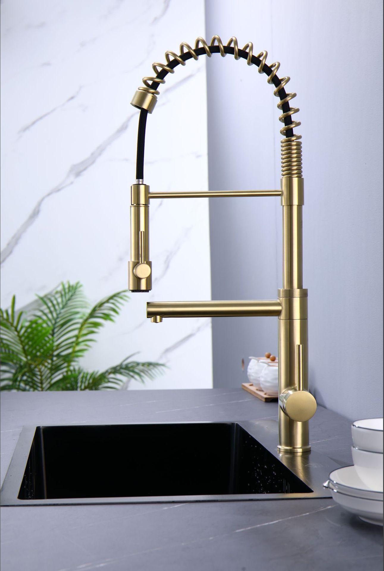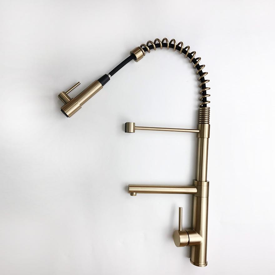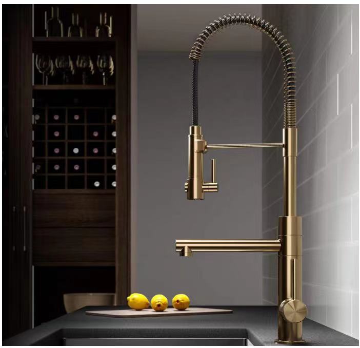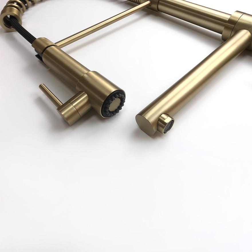 Grifo de cocina de latón con resorte transfronterizo, con doble salida de agua fría y caliente, extraíble y giratorio.