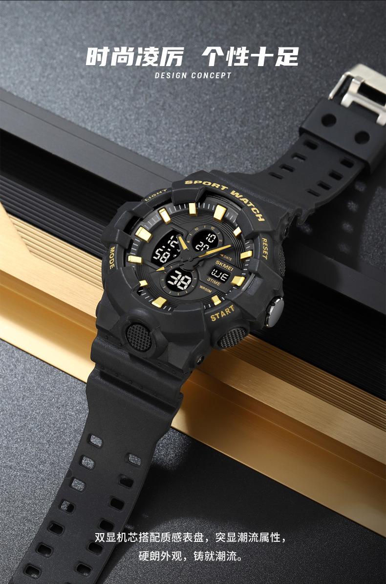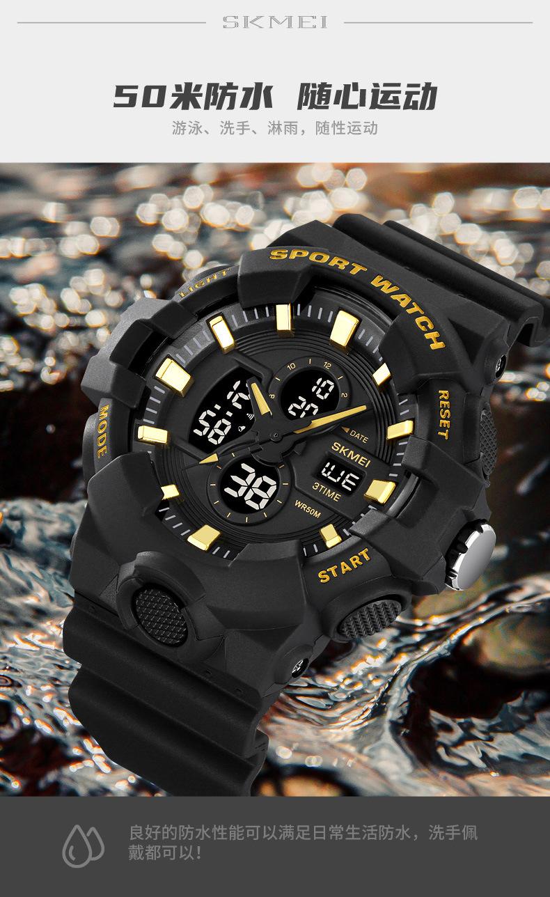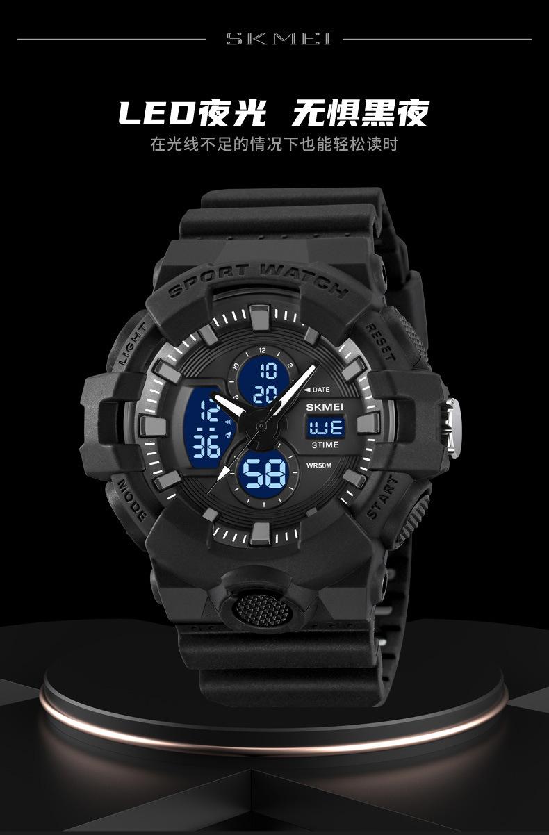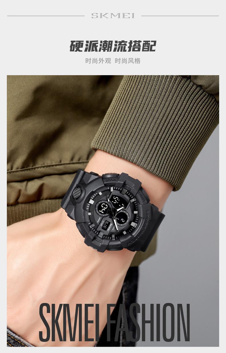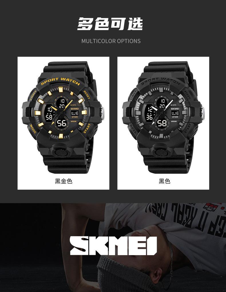 Reloj electrónico deportivo para exteriores Skmei para hombre, multifunción, con doble pantalla, luminoso, resistente al agua, con doble movimiento.