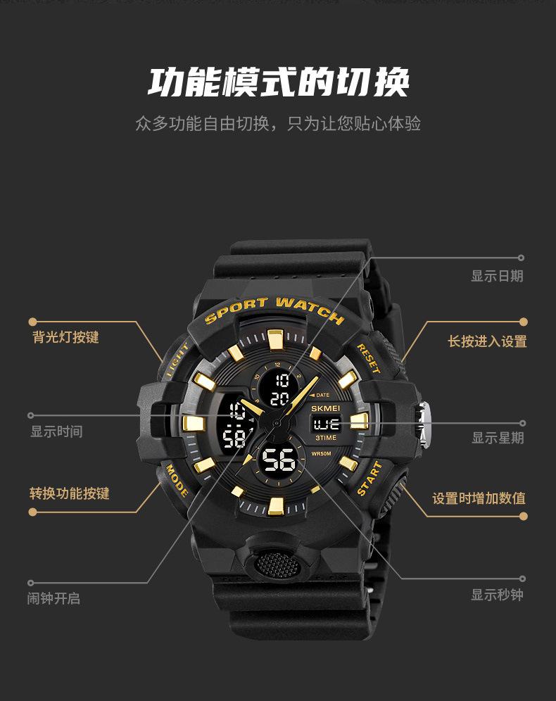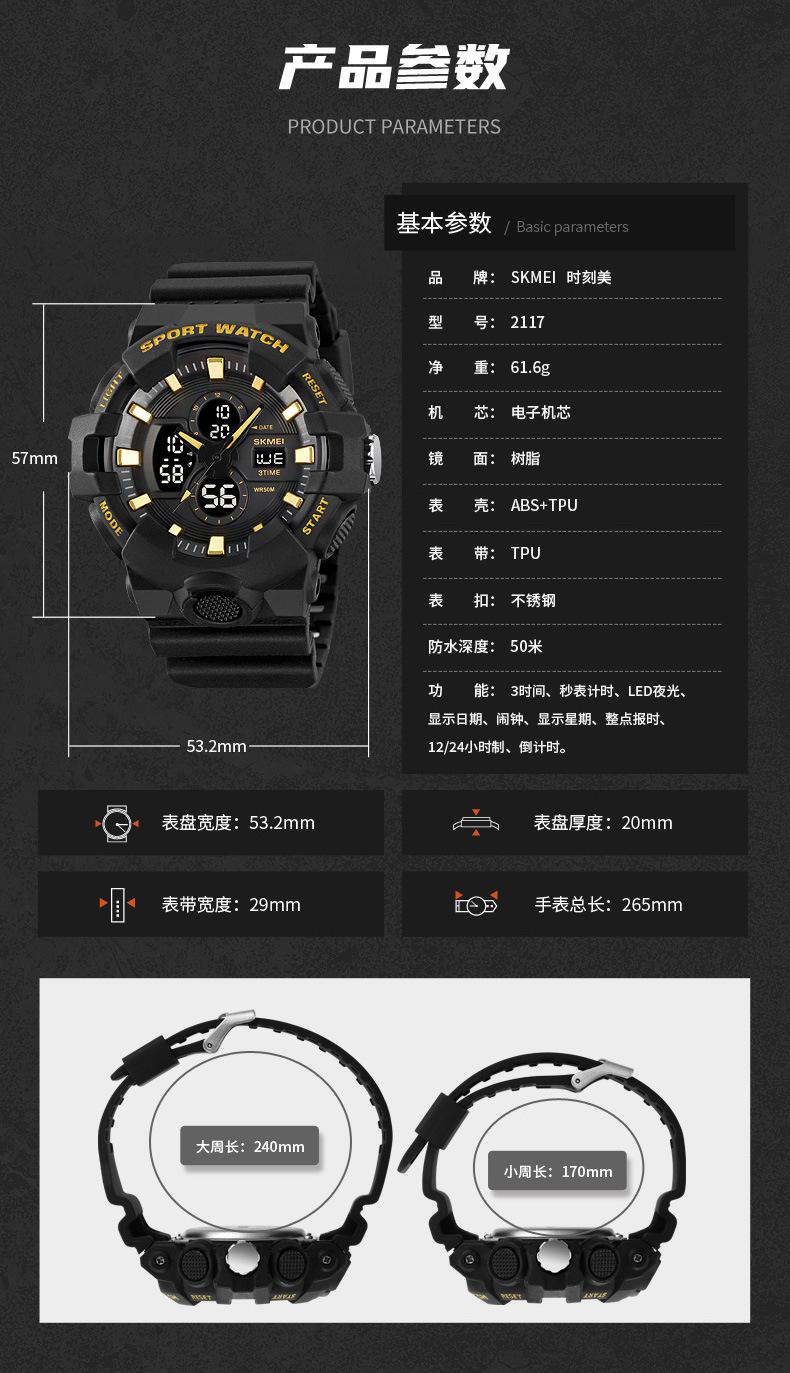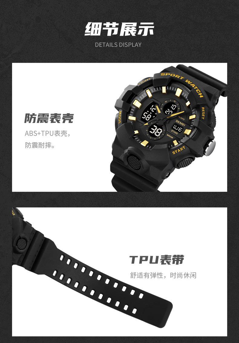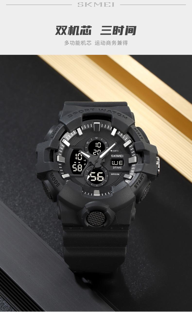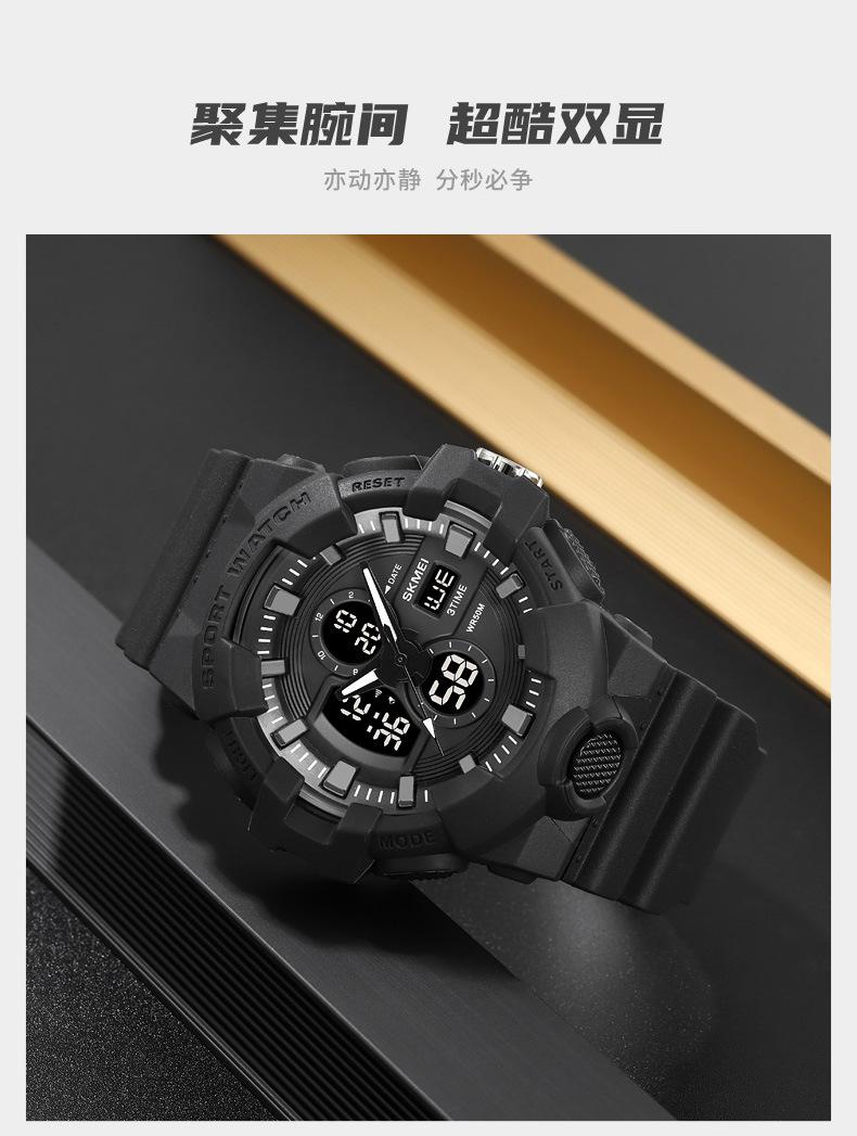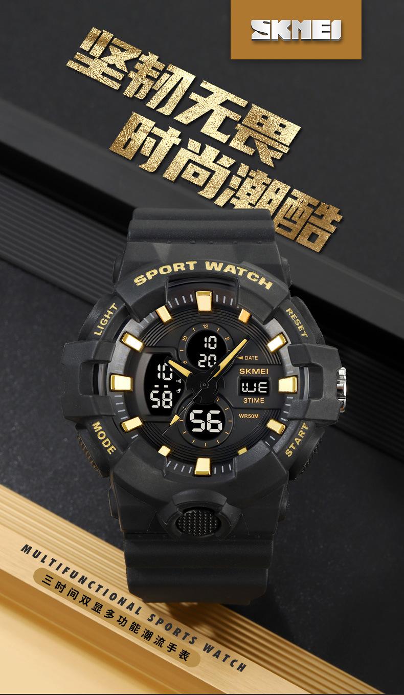 Reloj electrónico deportivo para exteriores Skmei para hombre, multifunción, con doble pantalla, luminoso, resistente al agua, con doble movimiento.