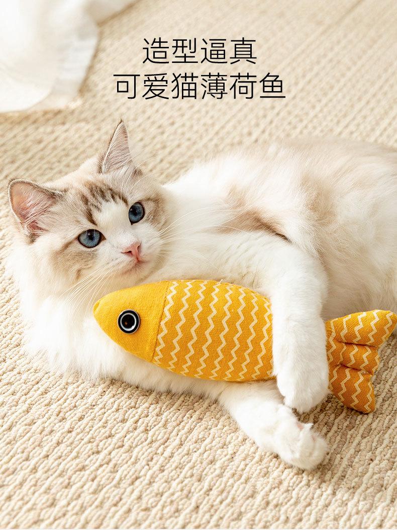 Compra Juguete para gatos, de lino, con forma de pez, con hierba gatera, para aliviar la congestión nasal, simulación de pez, molar para gatitos, divertido palo para gatos, suministros para mascotas. al por mayor en Joom.pro