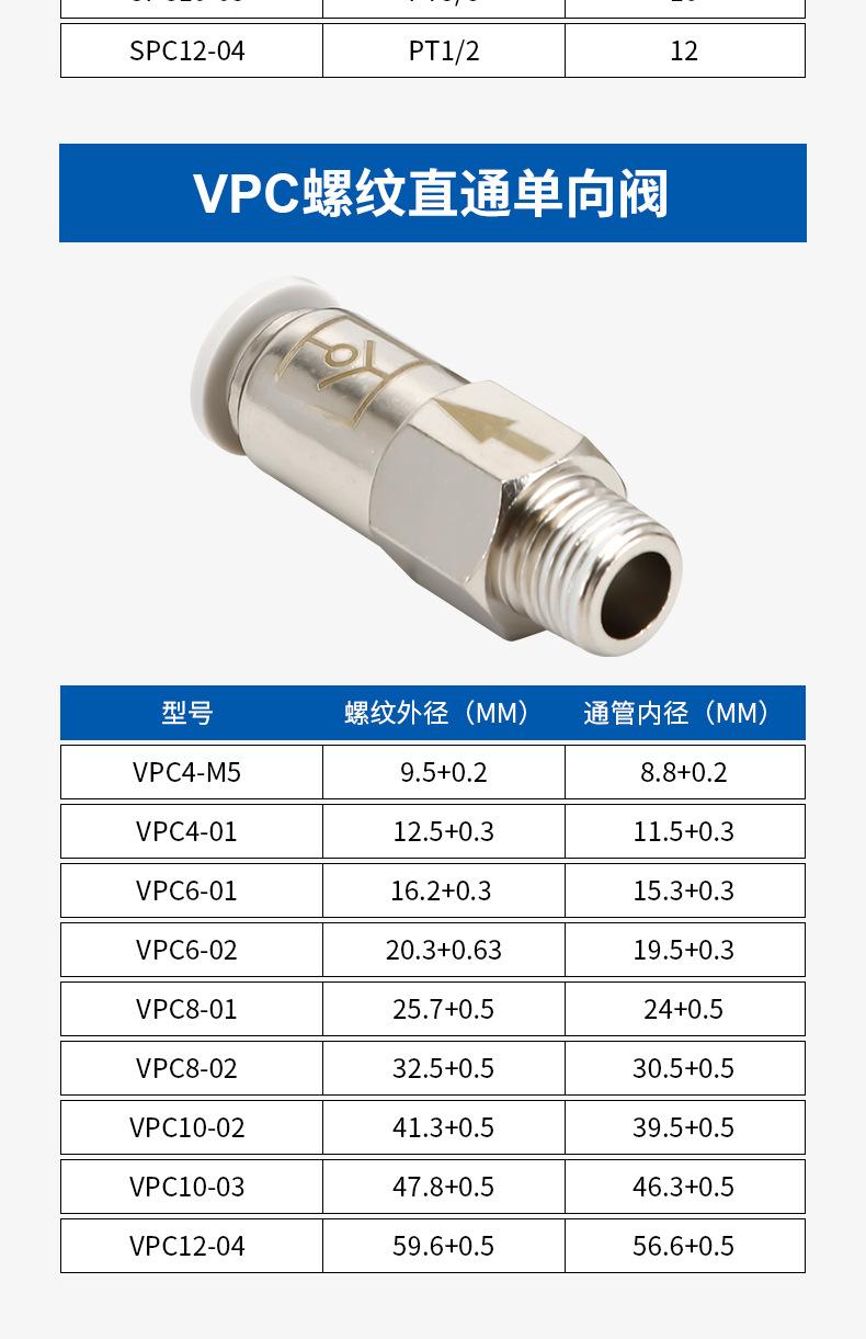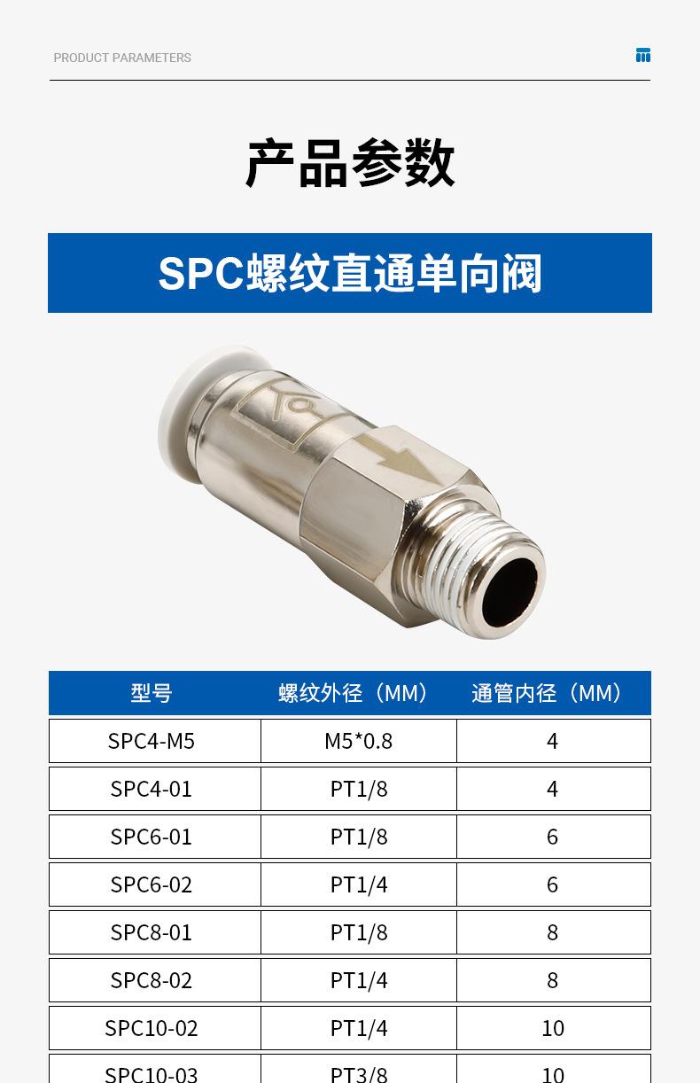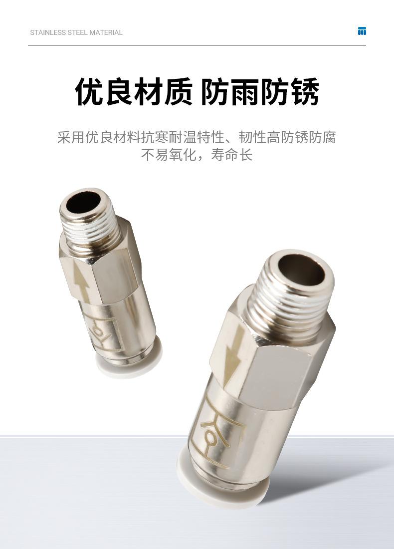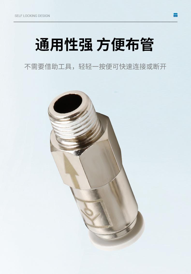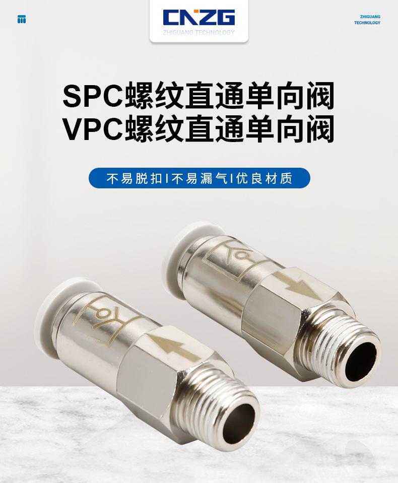 Válvula de retención SPC6-02/VPC8-02, rosca de paso recto, conector rápido, válvula de retención de gas, latón niquelado