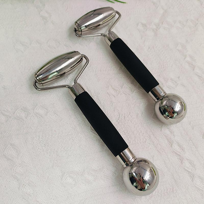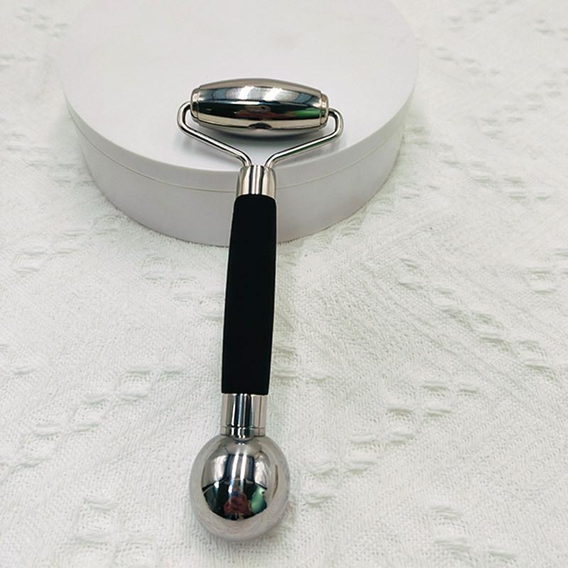 Venta caliente transfronteriza rodillo doble de acero inoxidable barra de belleza palo de masaje facial rodillo de acero inoxidable instrumento de masaje