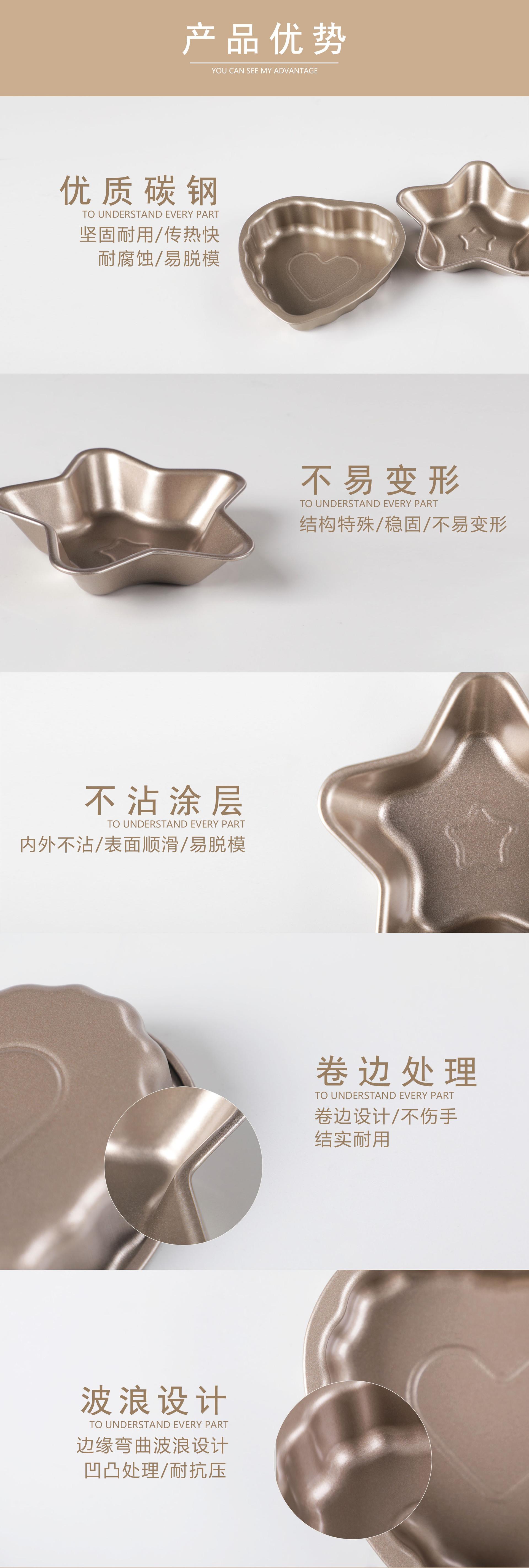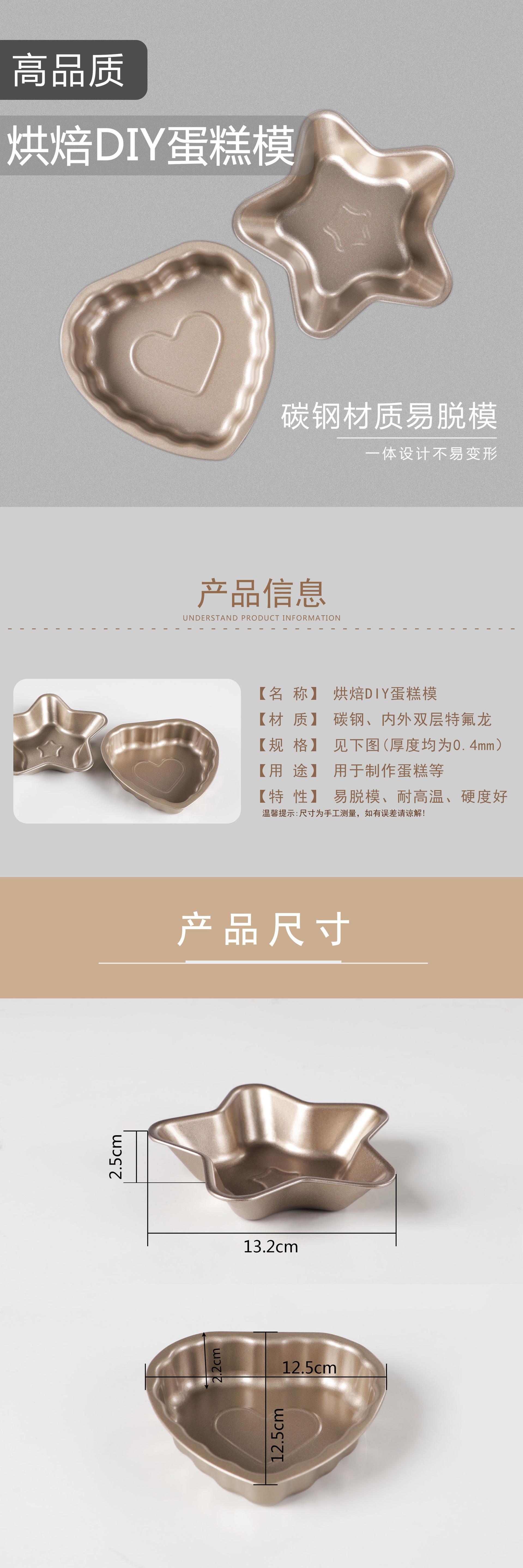 Acero al Carbono Antiadherente Dorado Molde para Pastel de Dibujos Animados de Cinco Estrellas y Corazón Molde para Hornear Bolas de Arroz Herramienta para Hornear Horno Doméstico