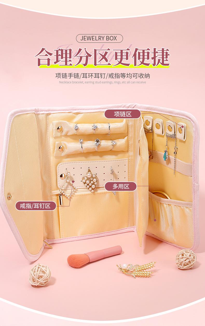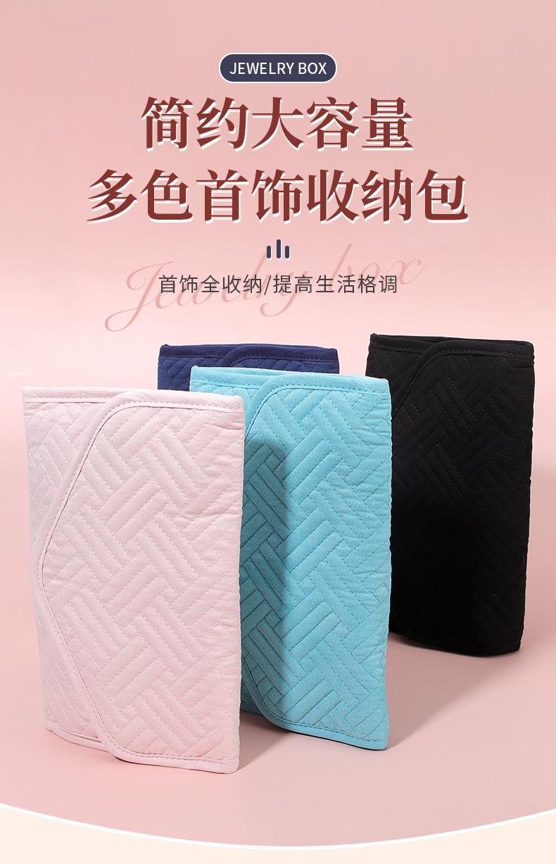 Bolsa de almacenamiento de joyas de franela creativa transfronteriza de Amazon, portátil, plegable, para pendientes, collares, anillos y joyas, de gran capacidad.
