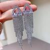 Aretes Largos de Borla de Espiga de Trigo de Circonita Aretes de Perlas con Diseño de Nicho de Alto Sentido Moda Dulce para Mujer