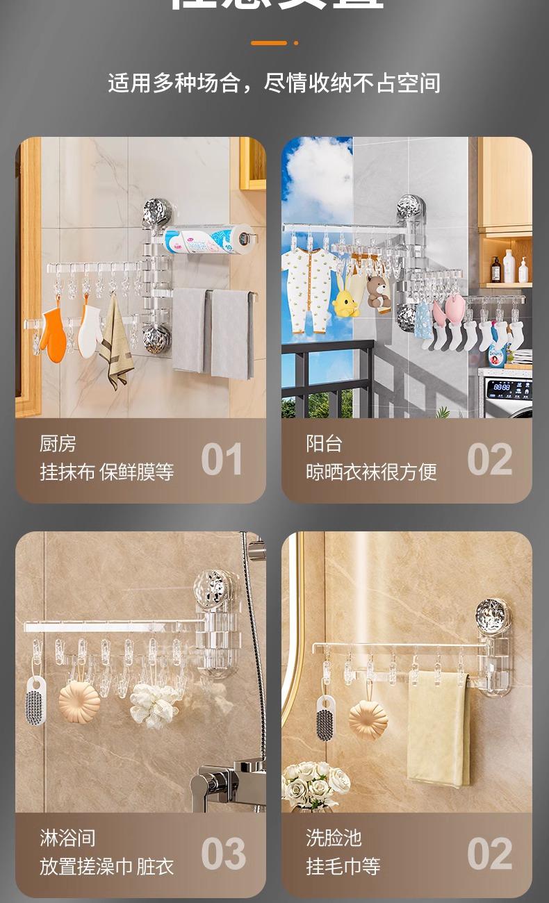 Escurridor Plegable con Ventosa Estante para Toallas Balcón Doméstico Secado Interior Calcetines Artefacto Sin Perforación Escurridor Multipinza