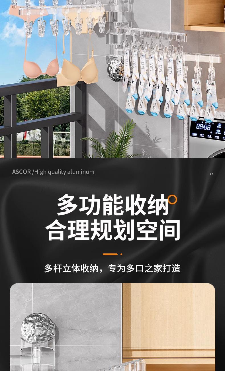 Multifunctional drying rack: black [4 bar 28 windproof clip]]