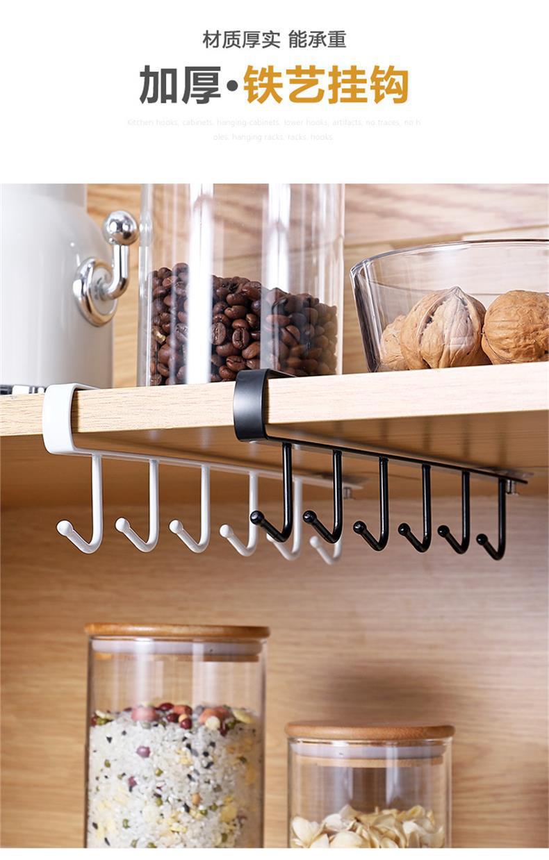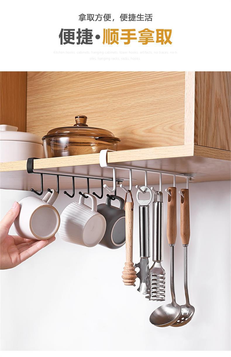 Gancho para gabinete de cocina, gancho inferior, gancho para gabinete colgante, estante para colgar sin perforaciones, estante de almacenamiento sin costuras, gancho de fila