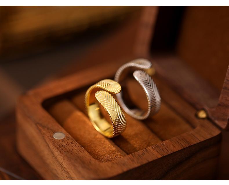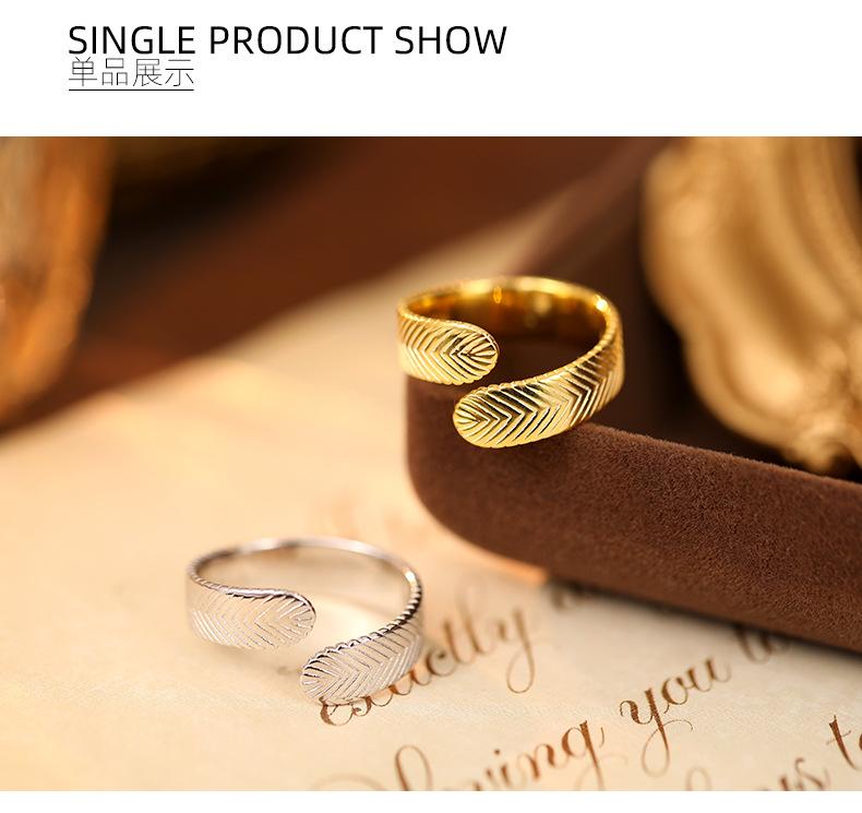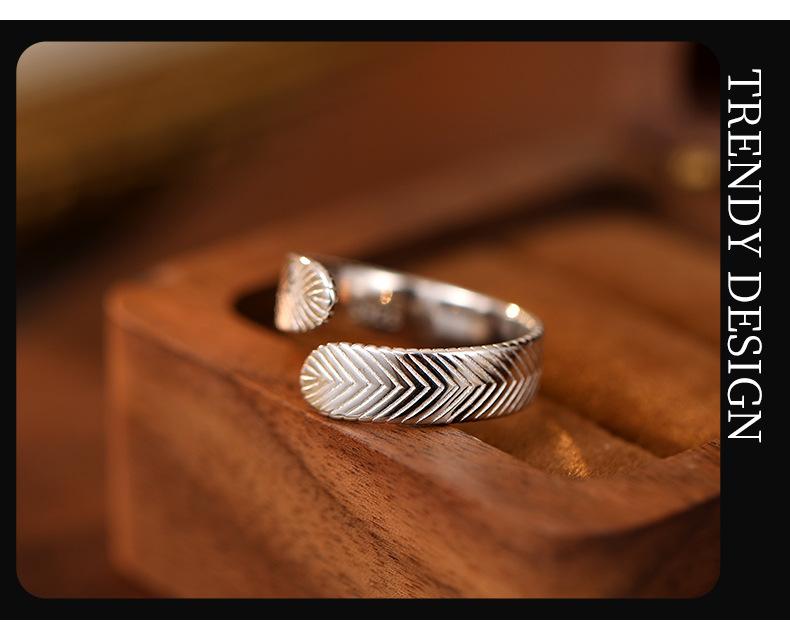 Compra Anillo de plata S925 estilo coreano con forma de pluma y nicho bajo el árbol de baniano, anillo de dedo abierto estilo ins de moda simple para mujer, joyería de plata al por mayor al por mayor en Joom.pro
