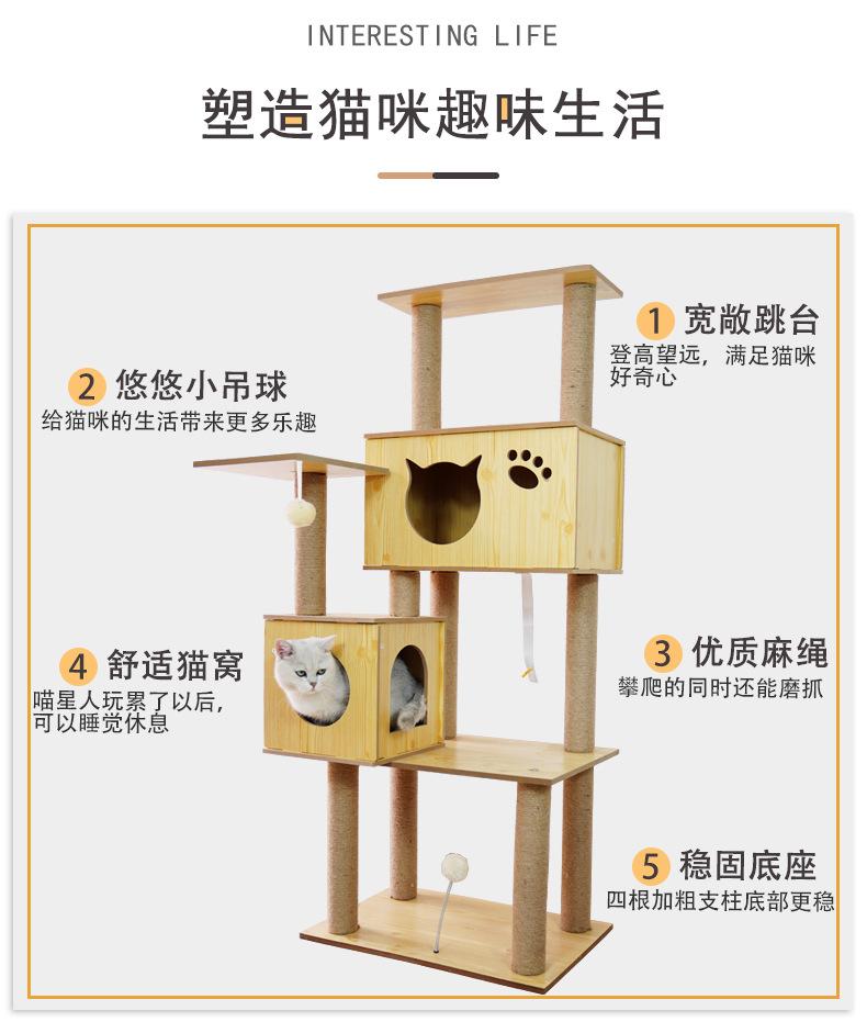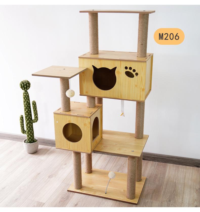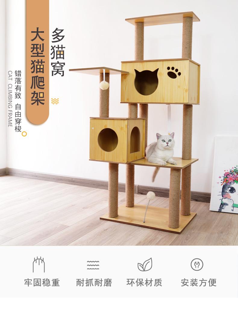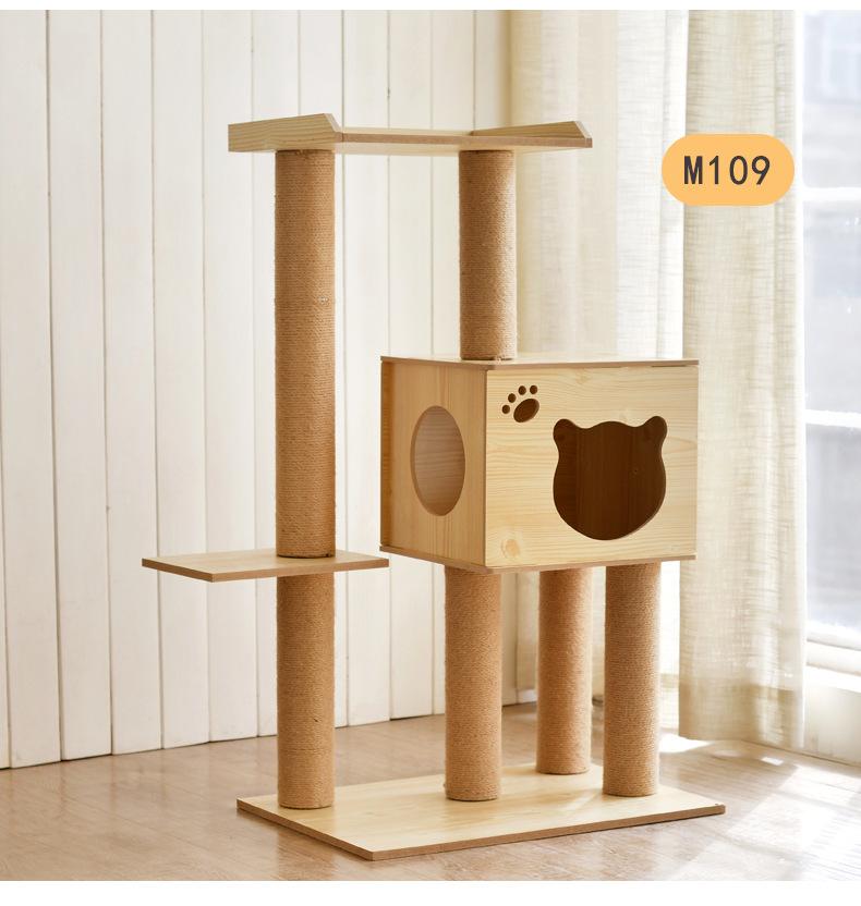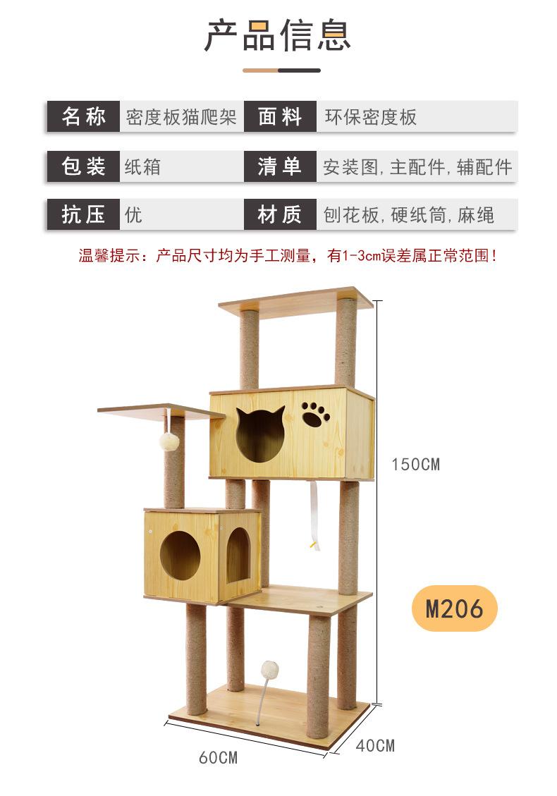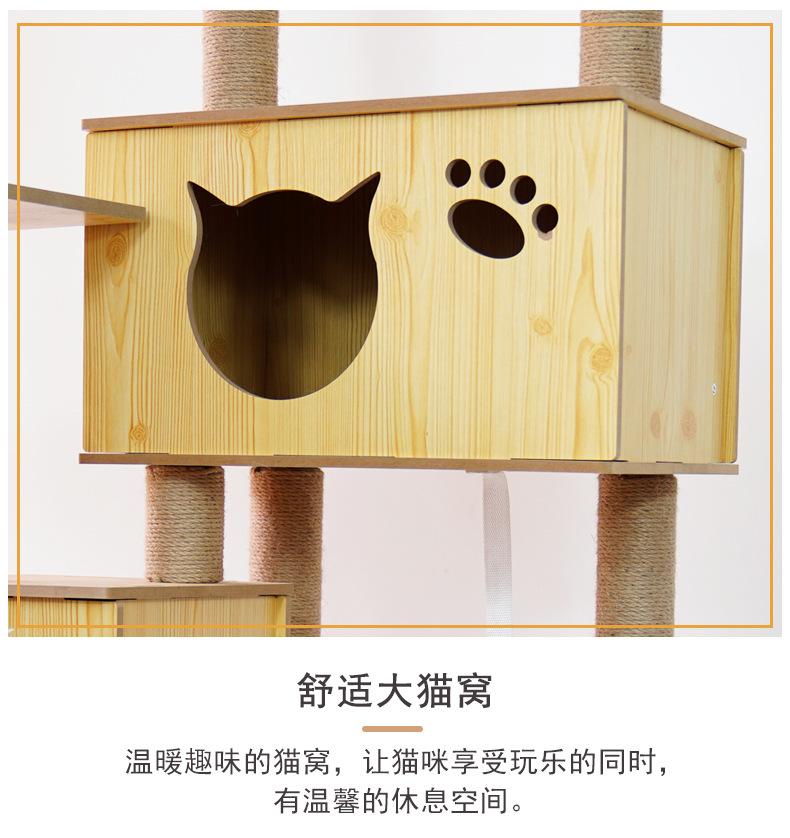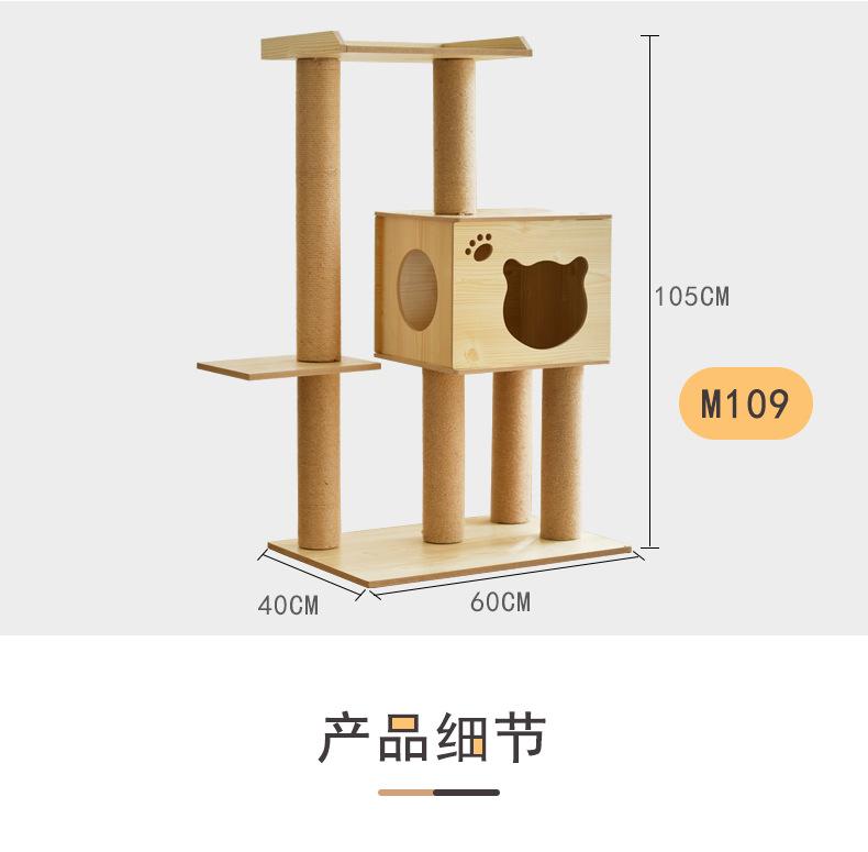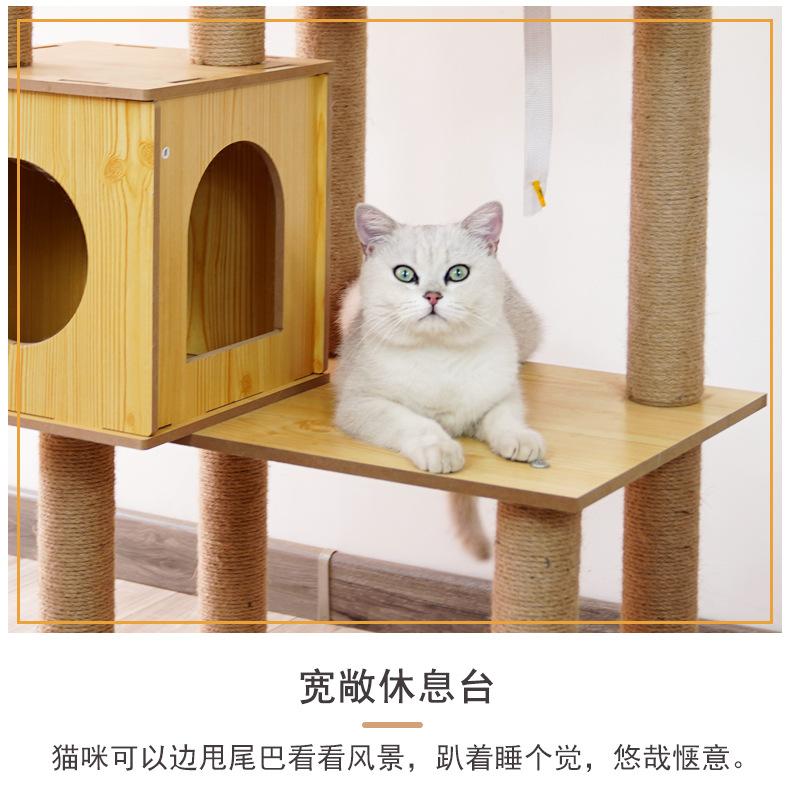 Tablero de muebles de alta densidad, columnas engrosadas, robusto y resistente a los arañazos, sin sacudidas, cuerda de cáñamo resistente, resistente a los arañazos y al desgaste. ¡Este árbol para gatos adopta un diseño multicapa, con una casita y escaleras antideslizantes! Es la mejor opción para gatos en casa.